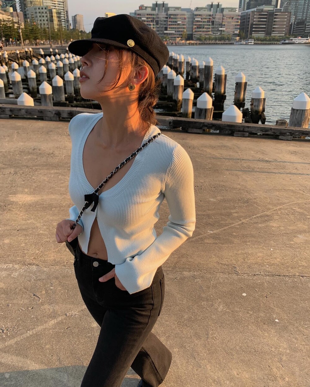 가슴 정 중앙에 포인트가 되어주는 리본 디테일까지 사랑하지 않을 수 없습니다 .