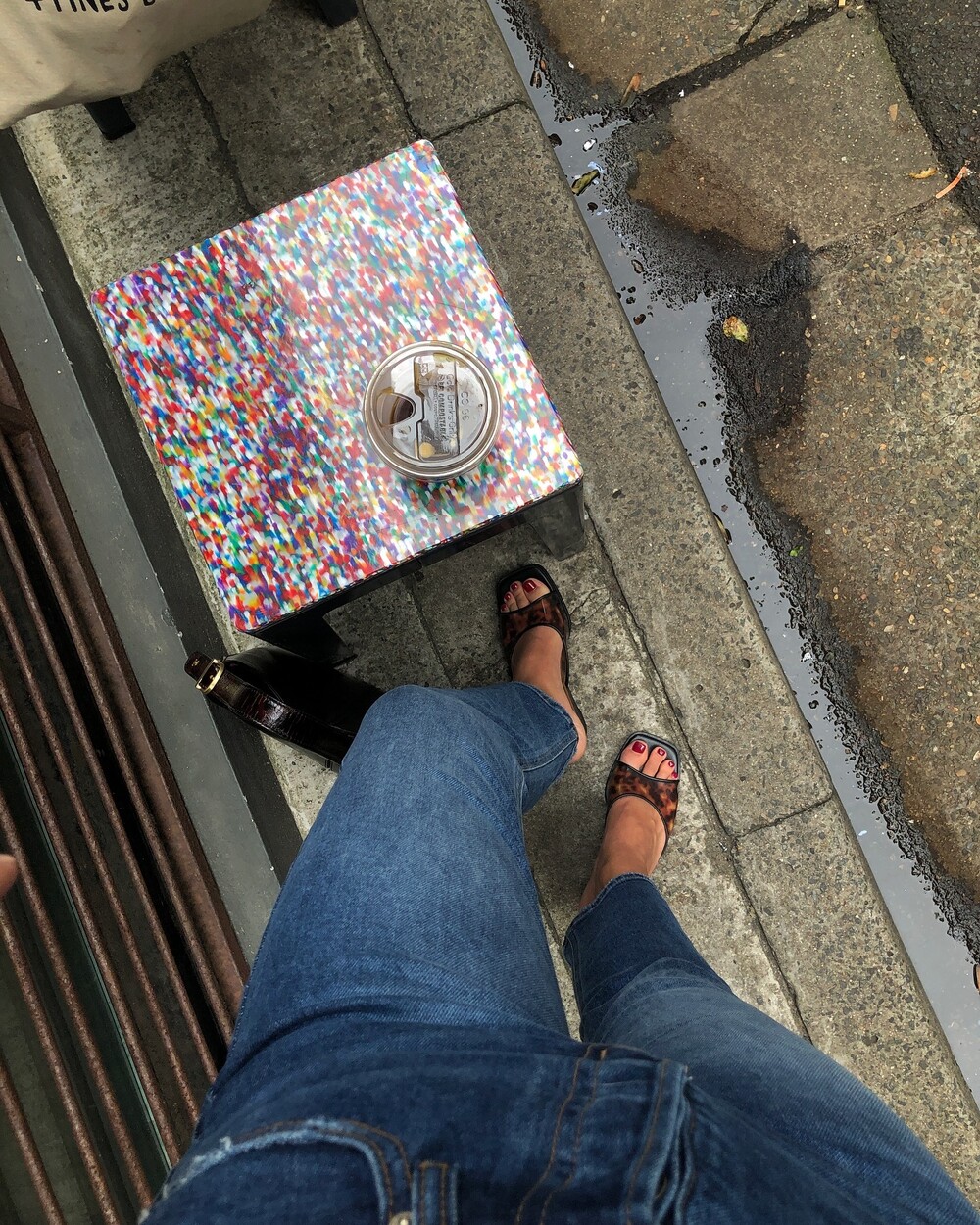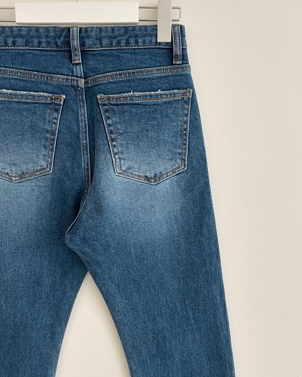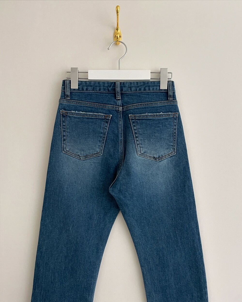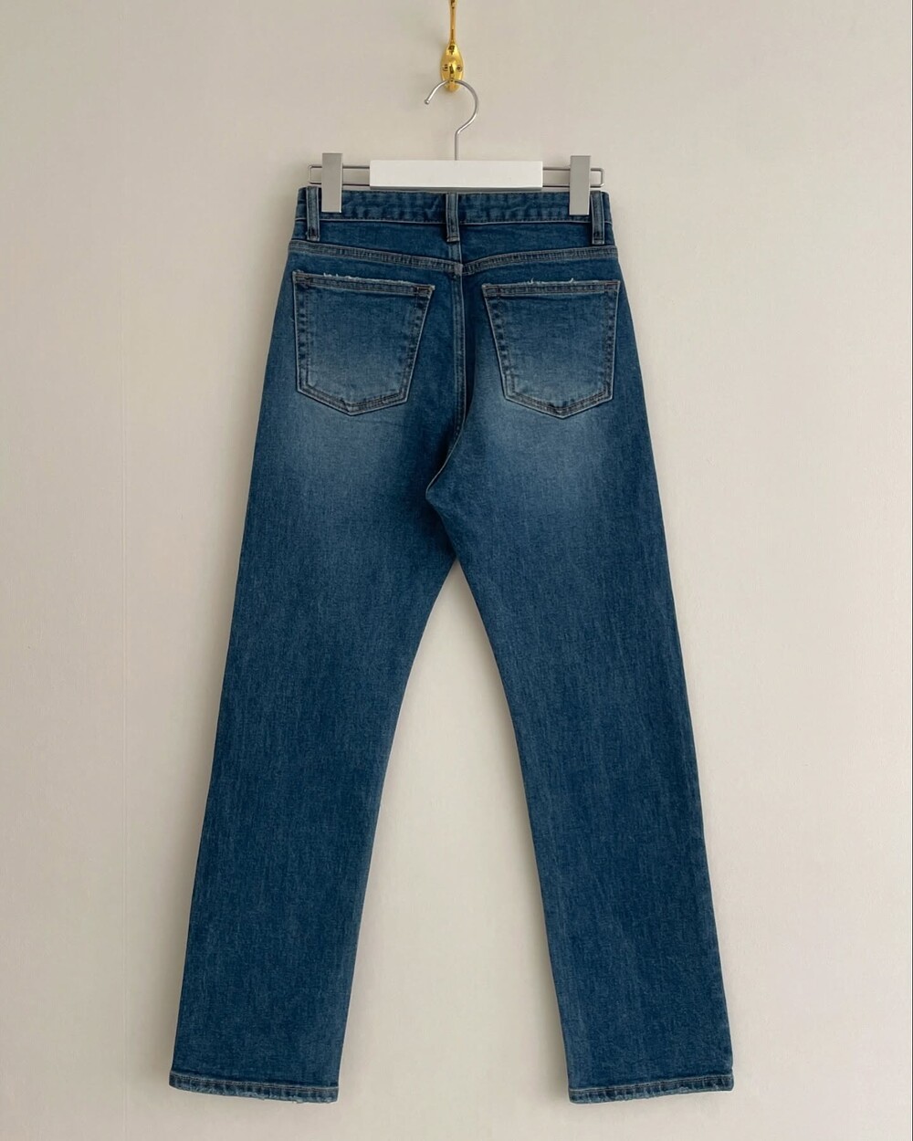앞&뒤 포켓입구와 바지 부리 단에 연출 된 데미지 작업이 되어있습니다.