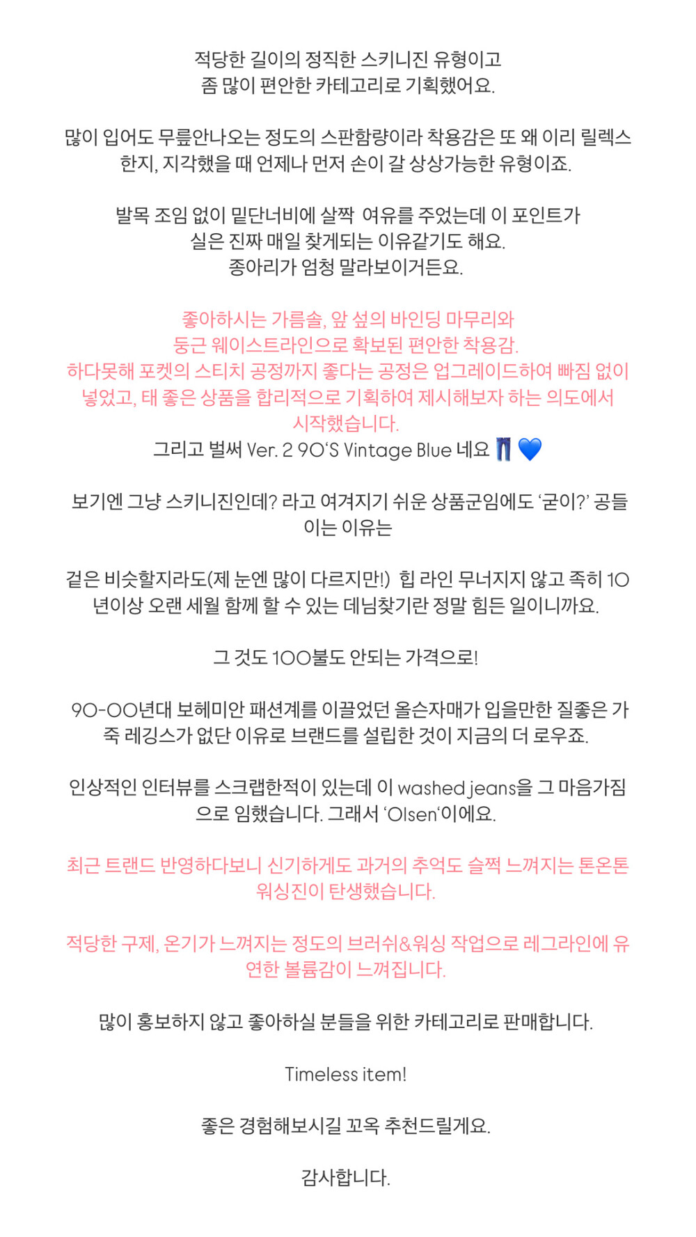 소재의 생산차순과, 워싱 등 공정에 따라 미세한 컬러펀차가 있을 수 있습니다.