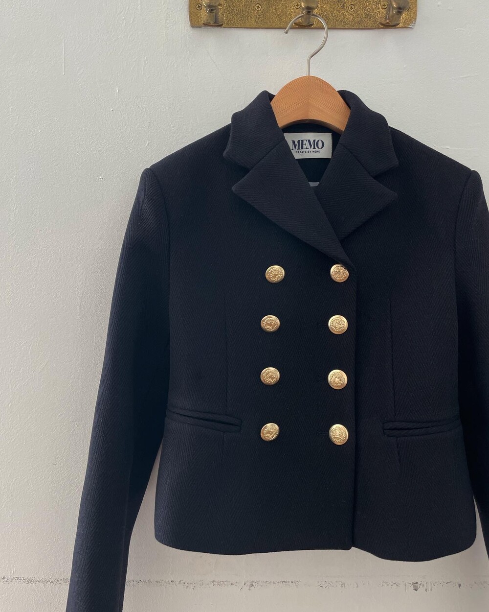적당한 허리라인과, 과감하리 만치 쇼트한 더블 라펠은 70's를 풍미했던 우먼 드레스업을 연상시킵니다.