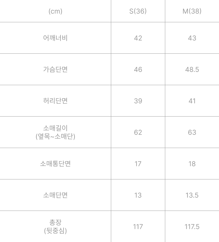 (상품사이즈 치수는 재는 방법과 위치에 따라 1~3cm 오차가 있을 수 있습니다. 니트의 경우 특히 편차의 범위가 큰 점 다시한번 말씀드립니다)