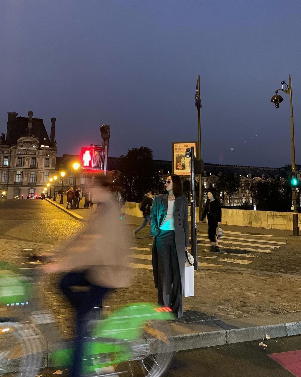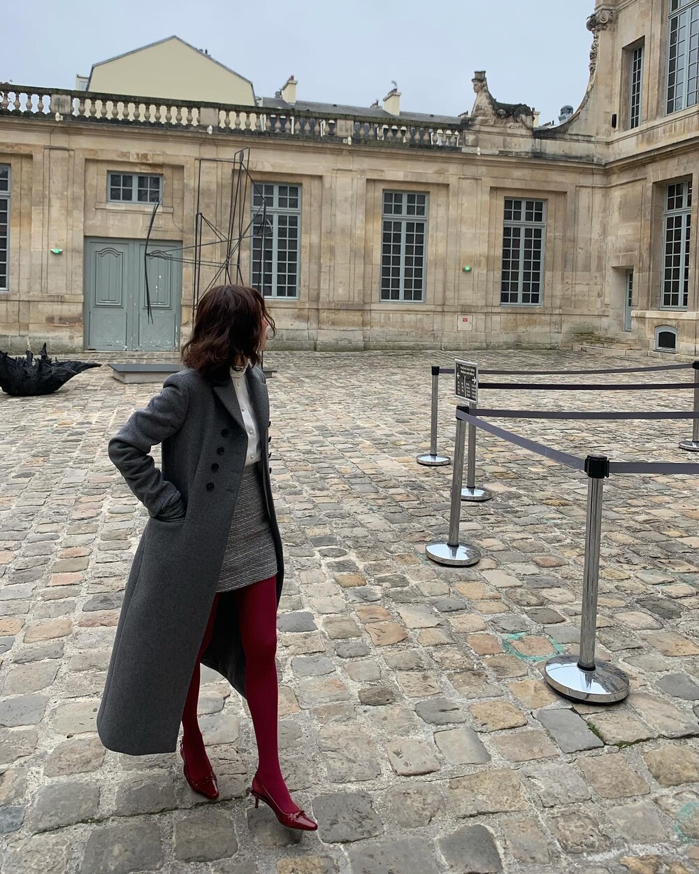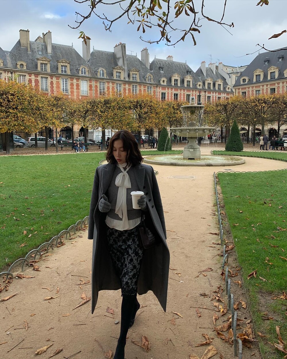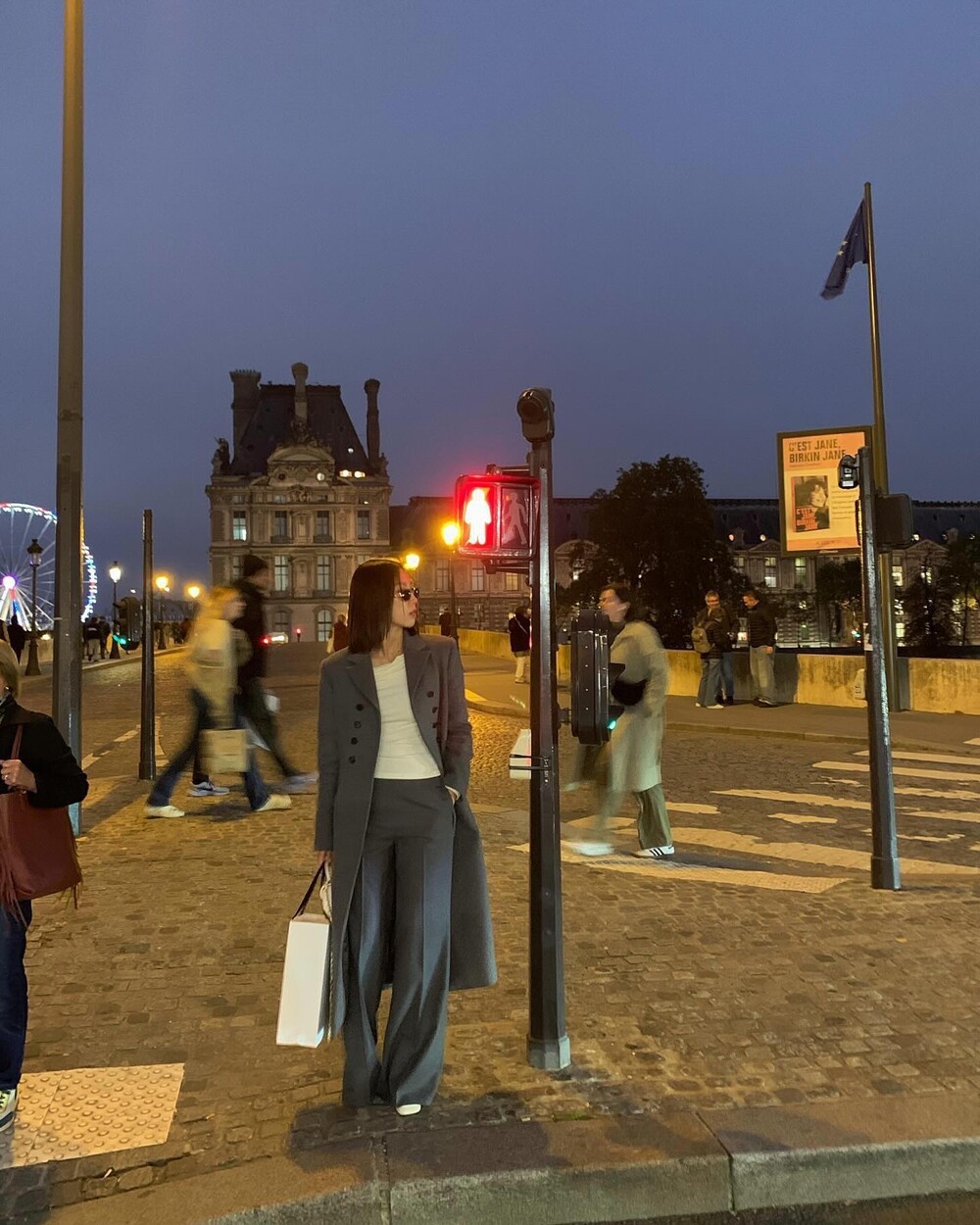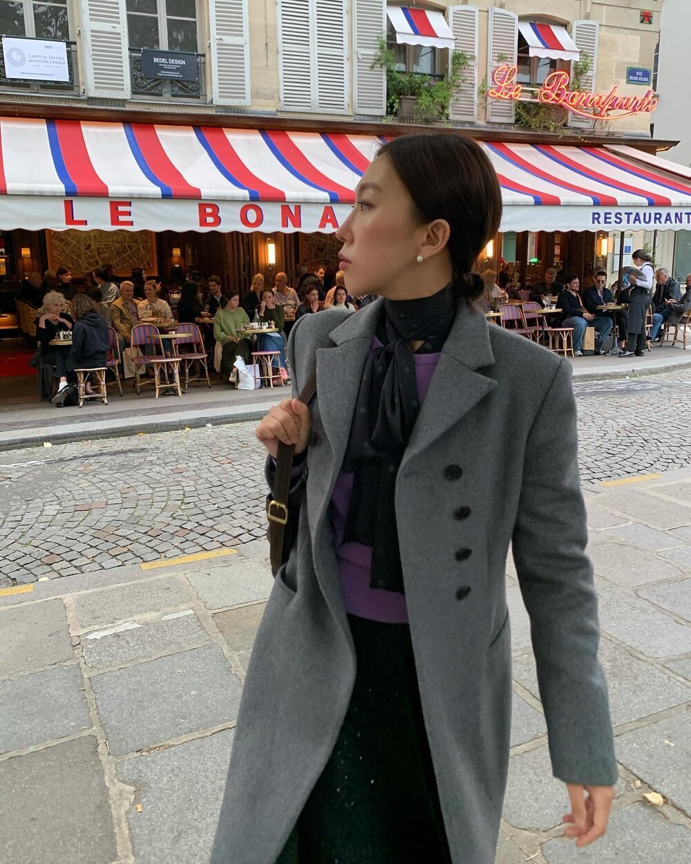 걸으면 슬릿 사이로 다리가 슬쩍보이는데 그 태가 자극적일만큼 센슈얼하고, 바람들지 않게 설정 된 짧은 라펠을 걷어올려 입으면 마치 제복을 입은 듯 더욱 냉소적이고 절제되어보이는 느낌.(연출하기에 따라 무드는 다르지만요!)