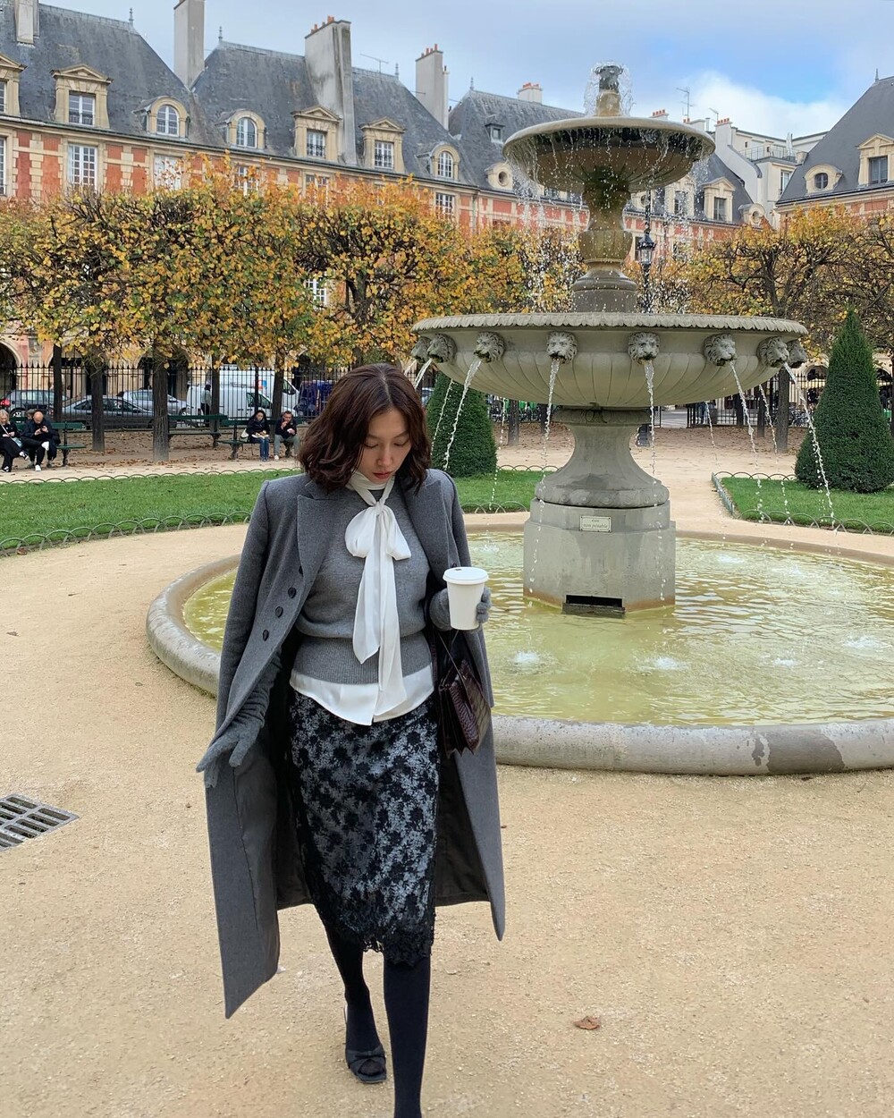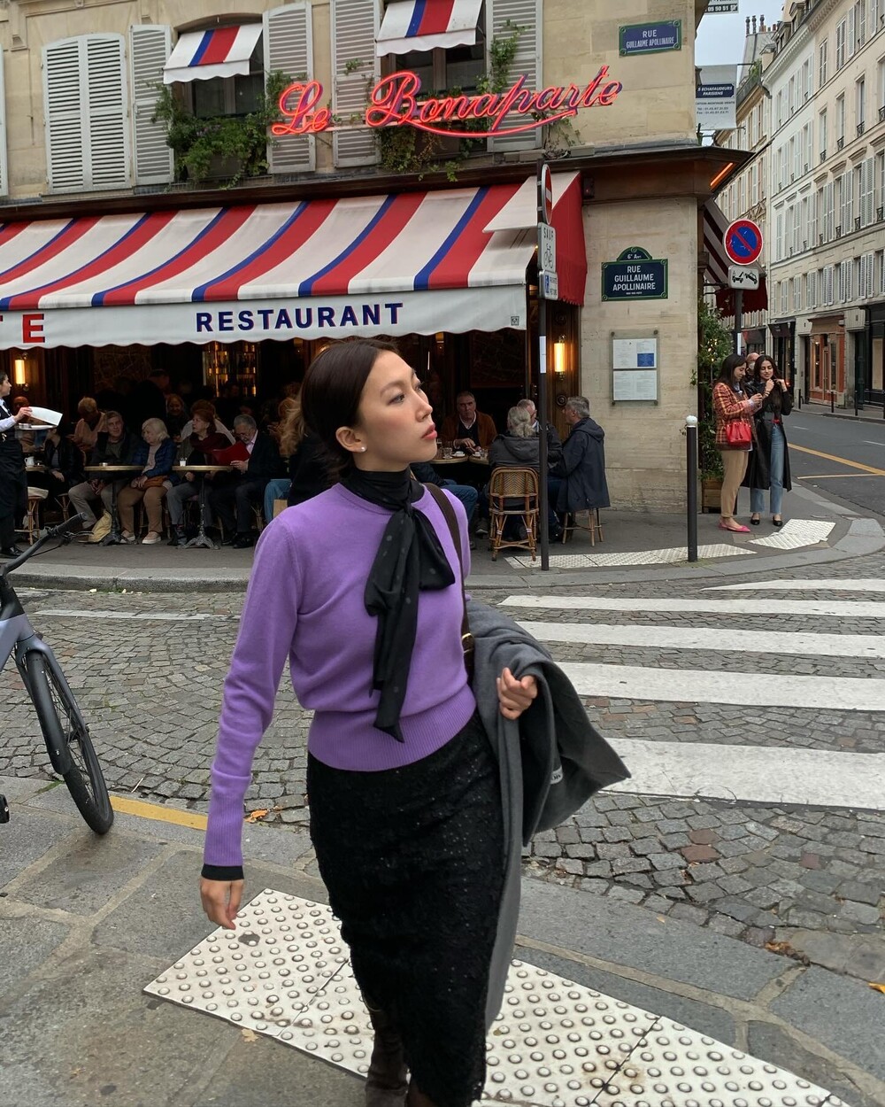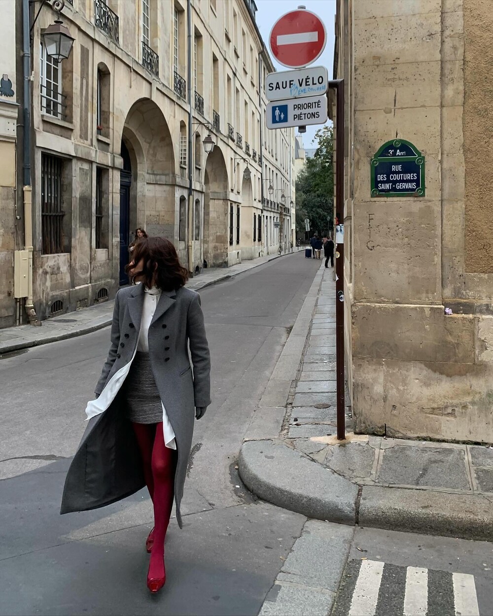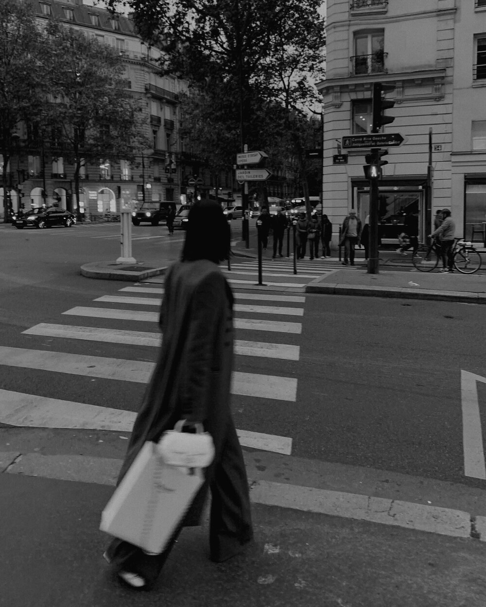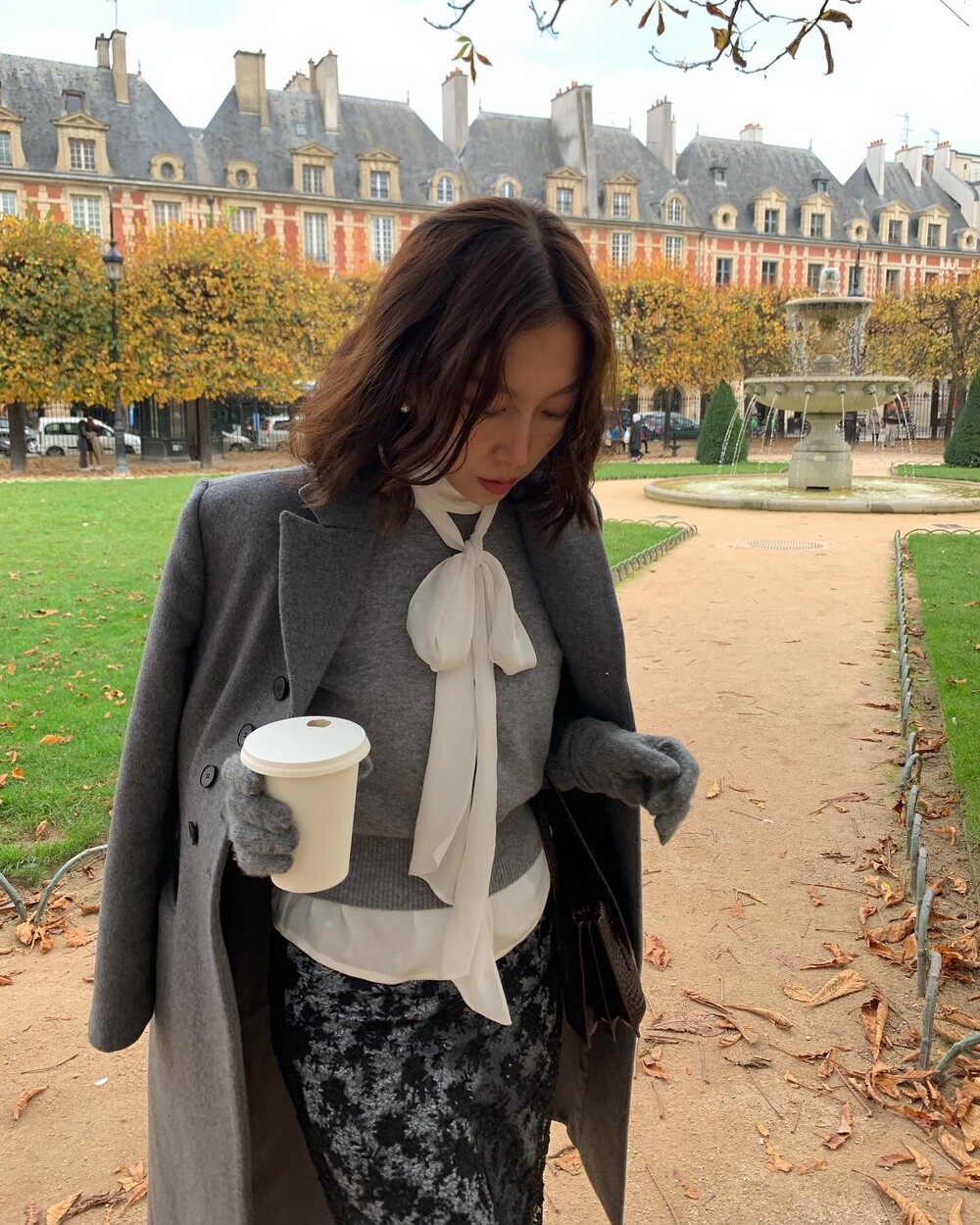 걸으면 슬릿 사이로 다리가 슬쩍보이는데 그 태가 자극적일만큼 센슈얼하고, 바람들지 않게 설정 된 짧은 라펠을 걷어올려 입으면 마치 제복을 입은 듯 더욱 냉소적이고 절제되어보이는 느낌.(연출하기에 따라 무드는 다르지만요!)