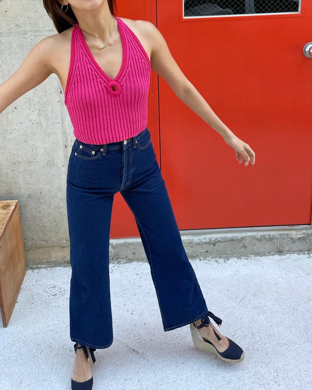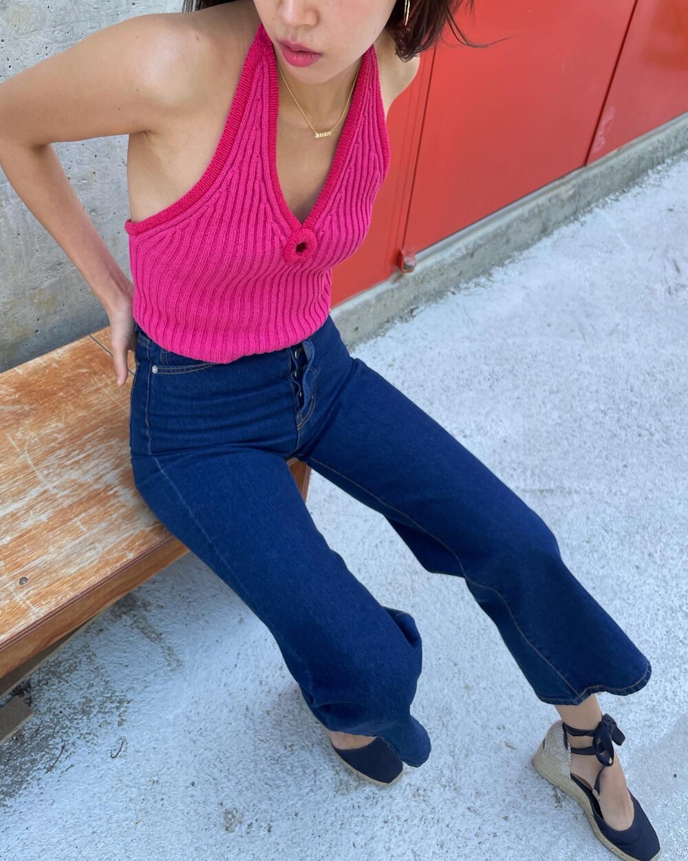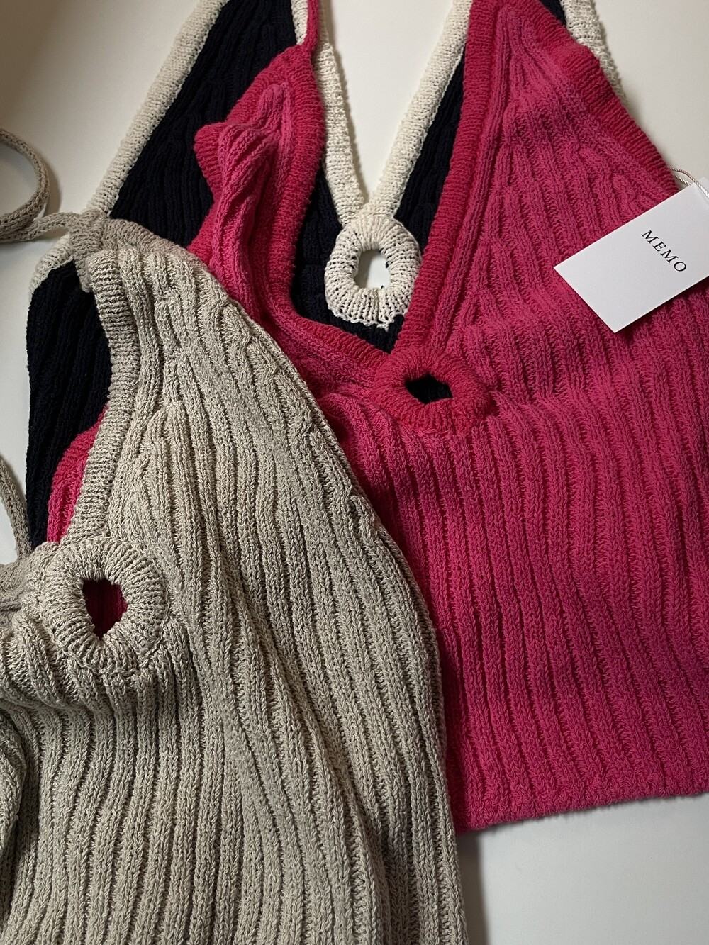 '홀터넥'은 개인적으로 무척 좋아하는 쉐입이라 원피스,탑,스윔웨어 할 것 없이 다양한 복종에서 섭렵해왔는데요, 그래서더욱 뻔하지 않고 신선한 아이템으로 선보이고 싶었어요.