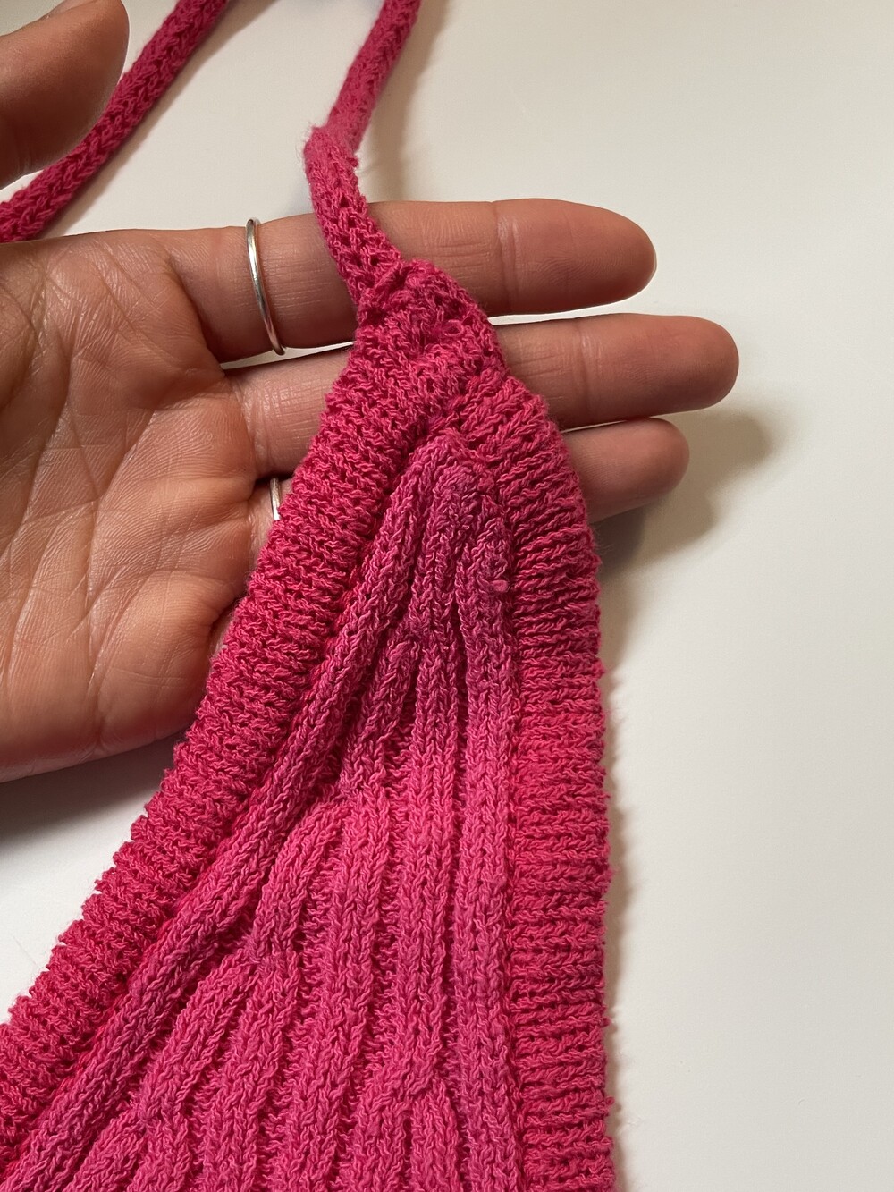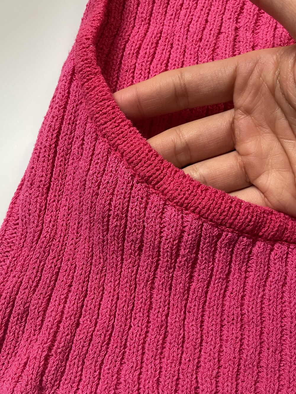 밀도가 낮은 짜임으로 제직된 린넨 니트웨어의 특성상 엣지라인의 마무리가 균일하지 않아 보일 수 있습니다.