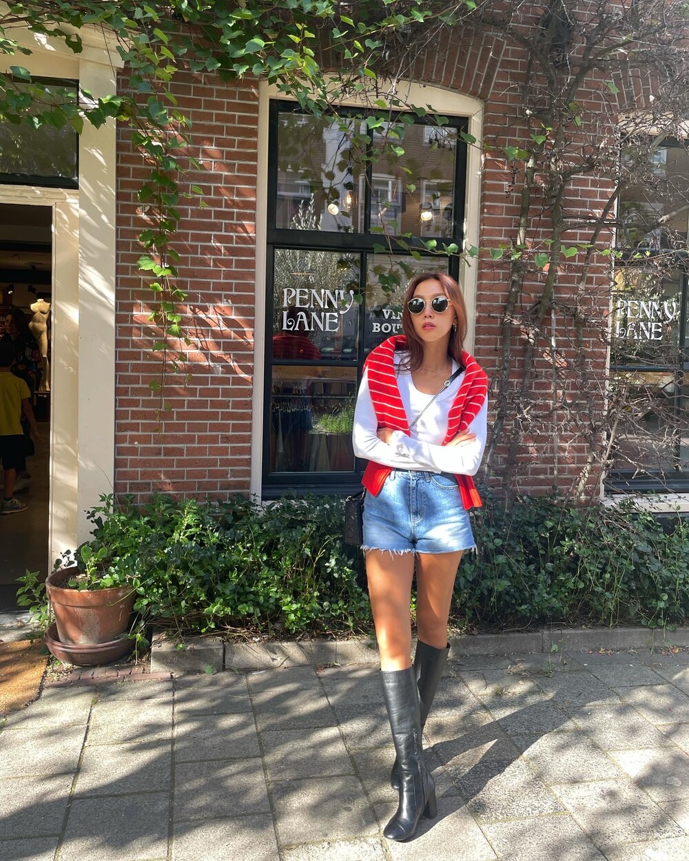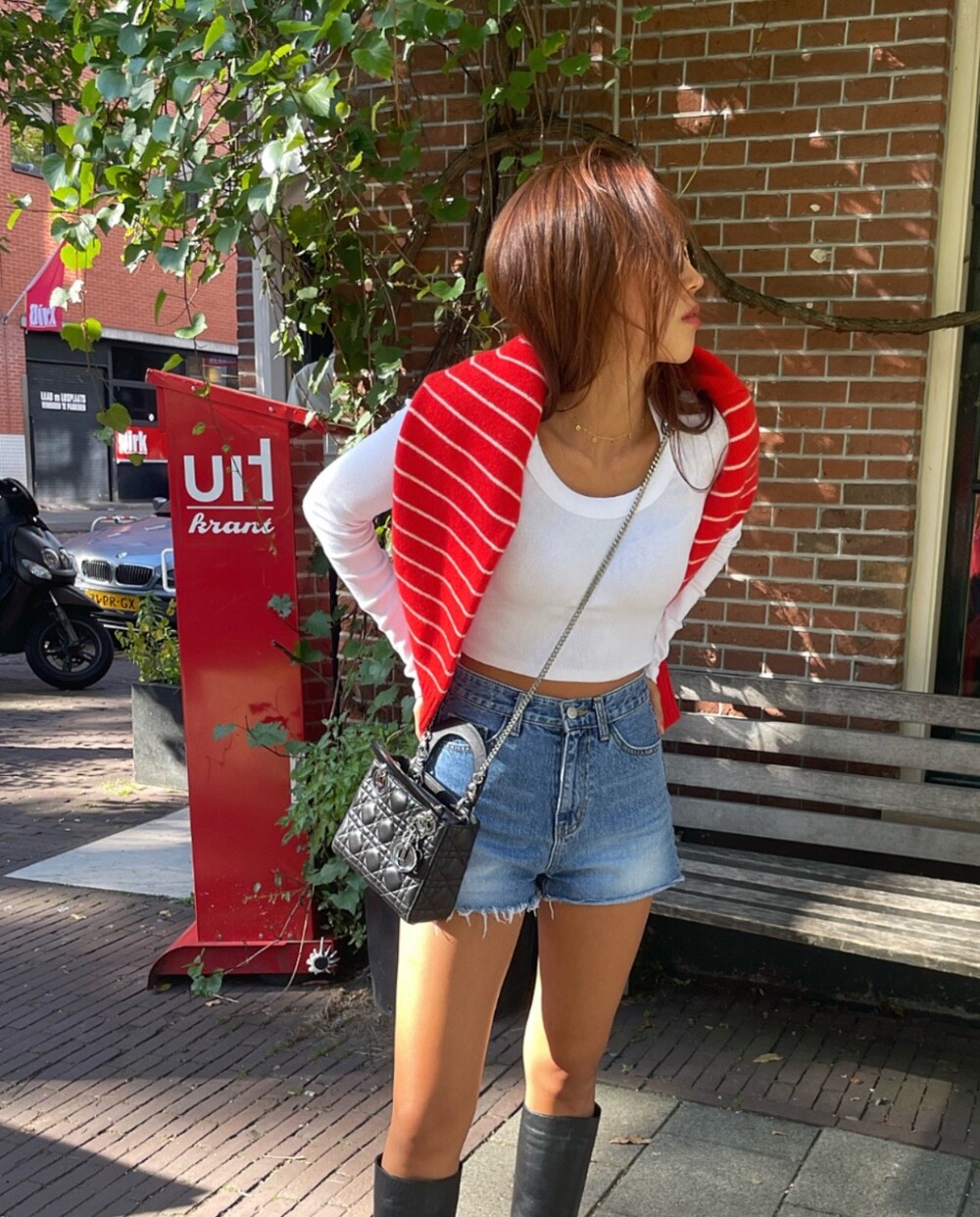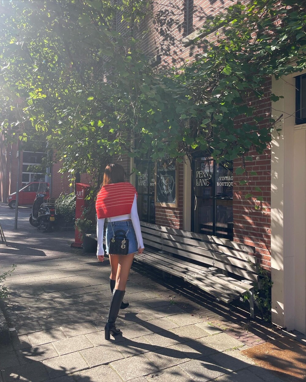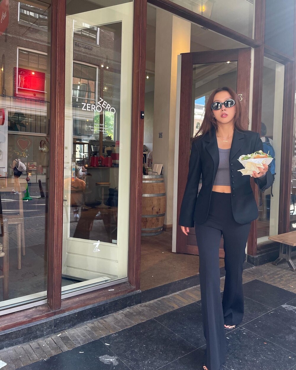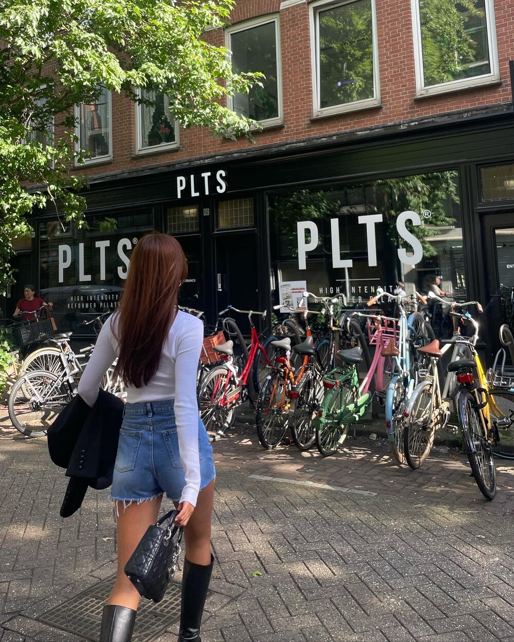 맥시한 소매 기장으로 팔 라인은 슬림해보이구요, 쏘옥 굴려진 허리라인은 들뜸 없이 바디를 감싸주어 감량 효과까지 꽤 좋습니다.
