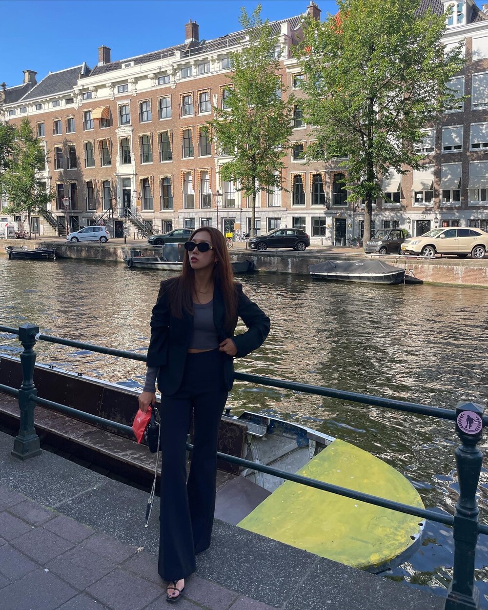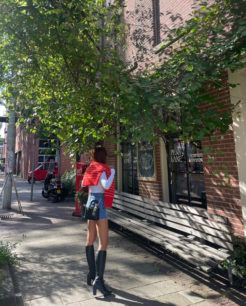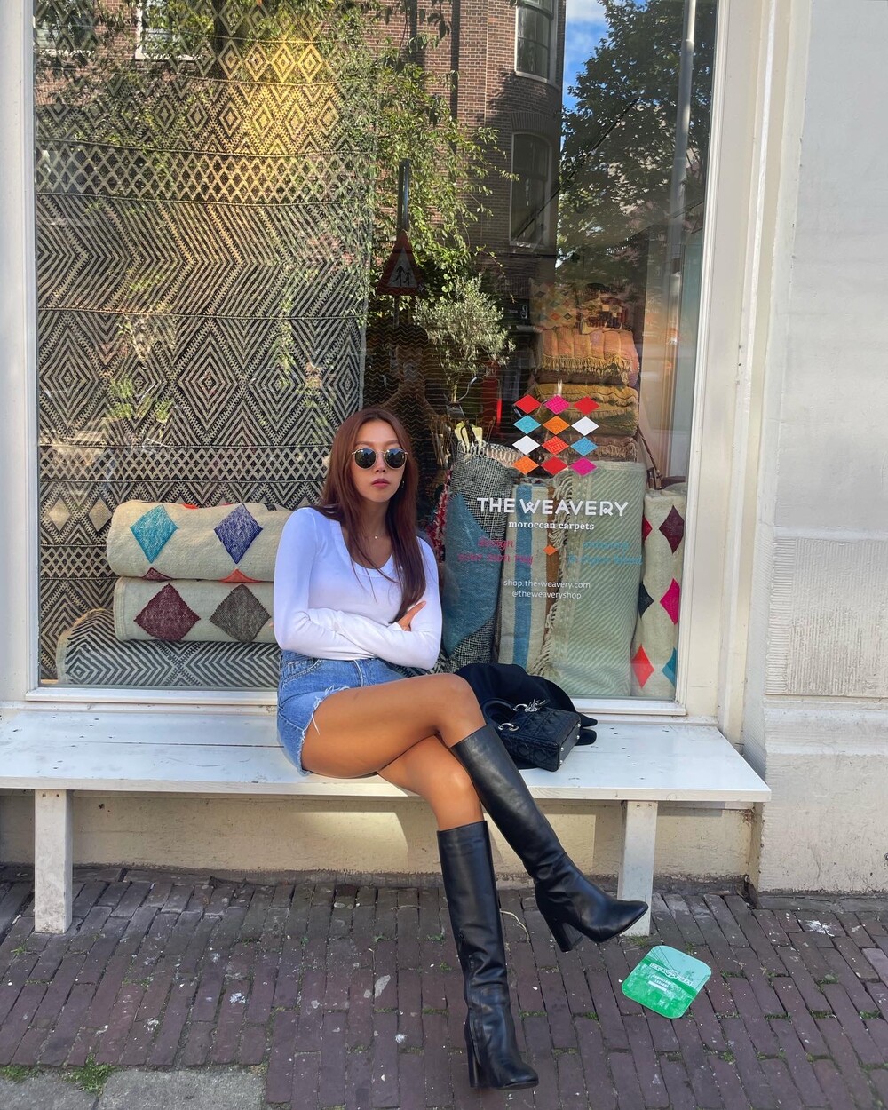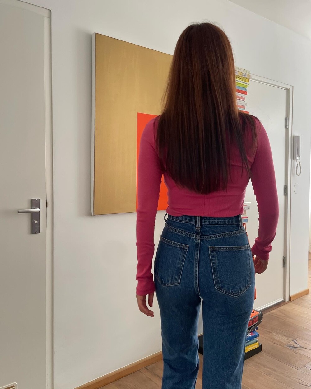 맥시한 소매 기장으로 팔 라인은 슬림해보이구요, 쏘옥 굴려진 허리라인은 들뜸 없이 바디를 감싸주어 감량 효과까지 꽤 좋습니다.