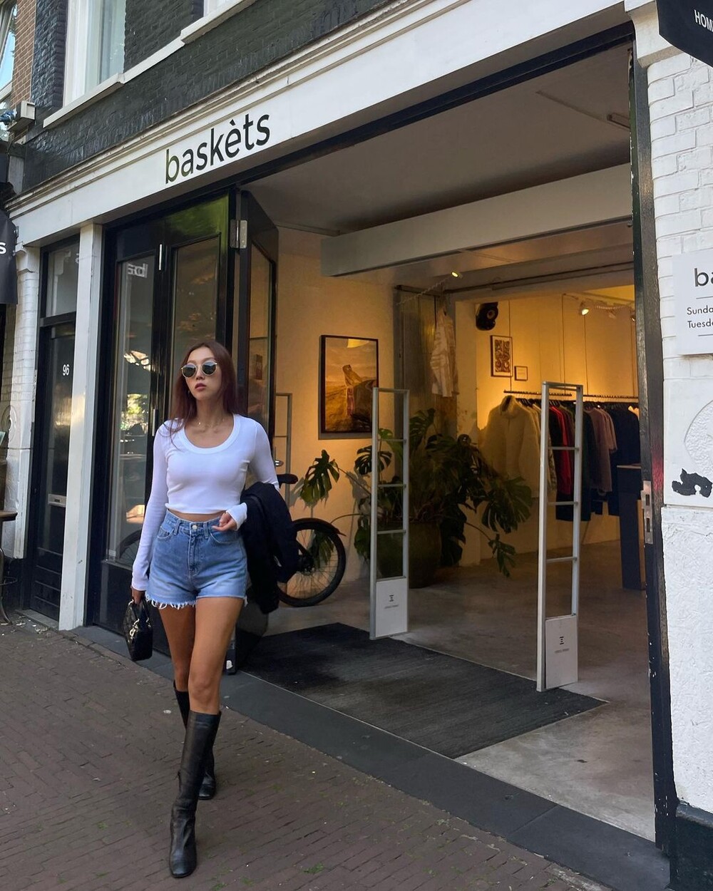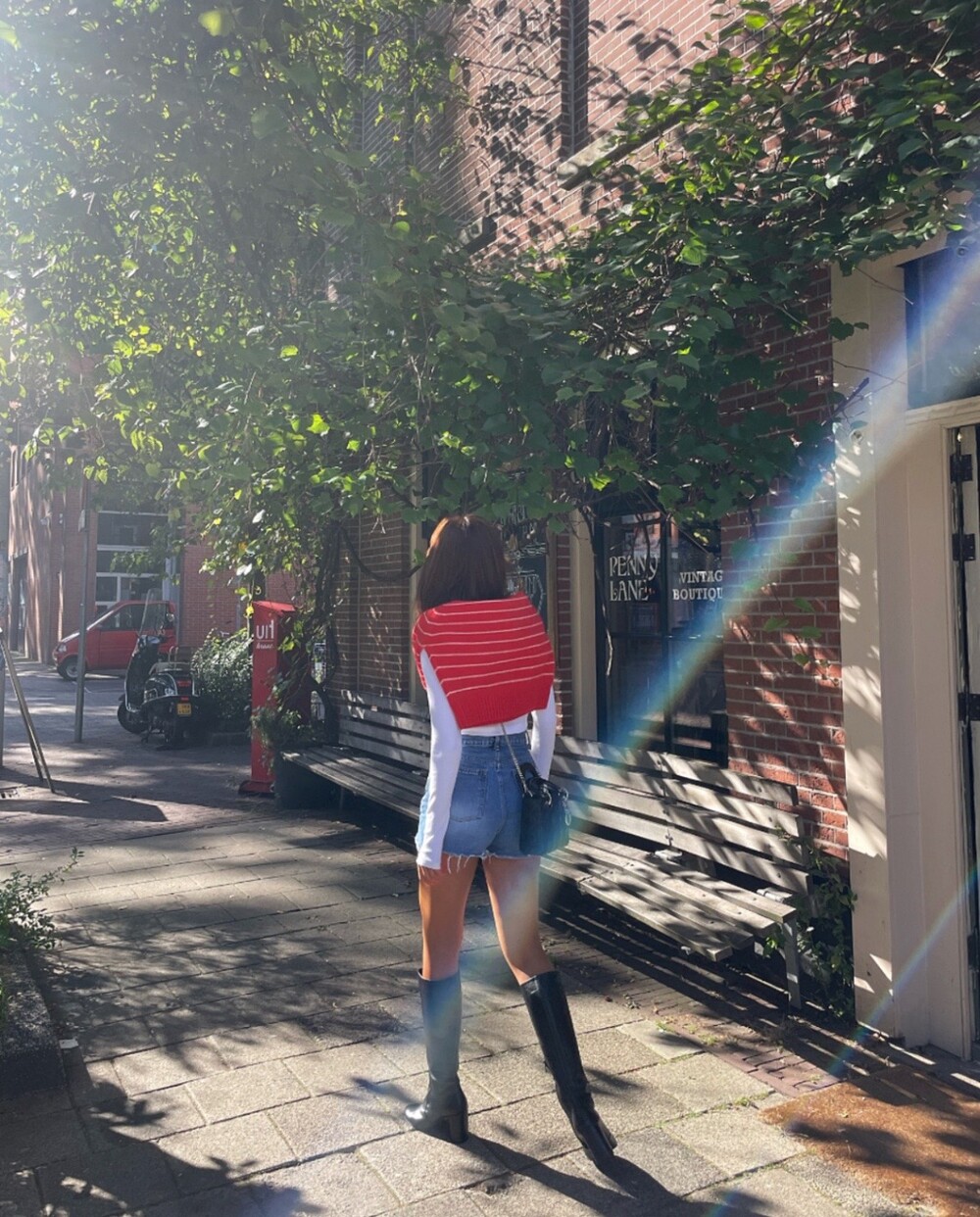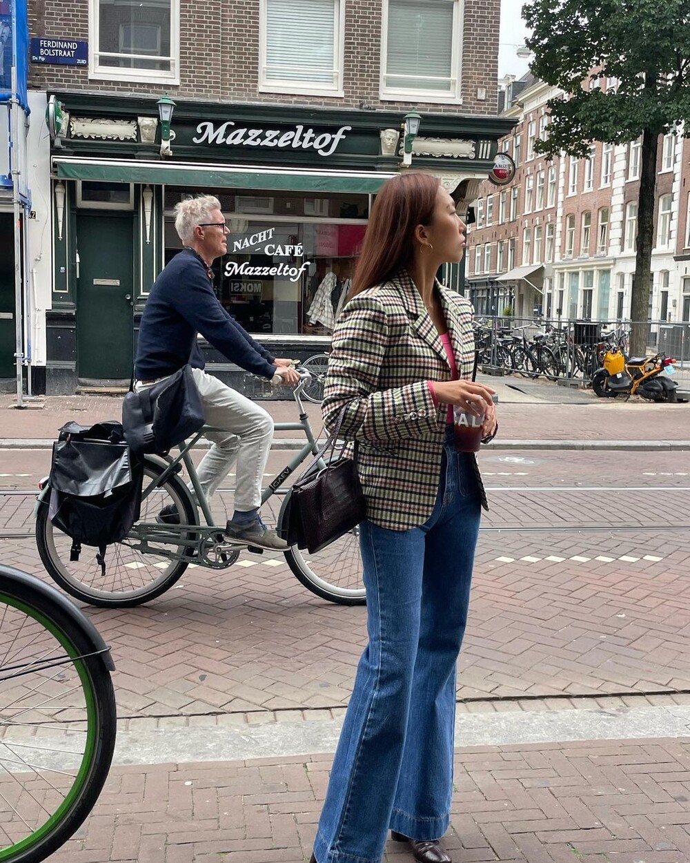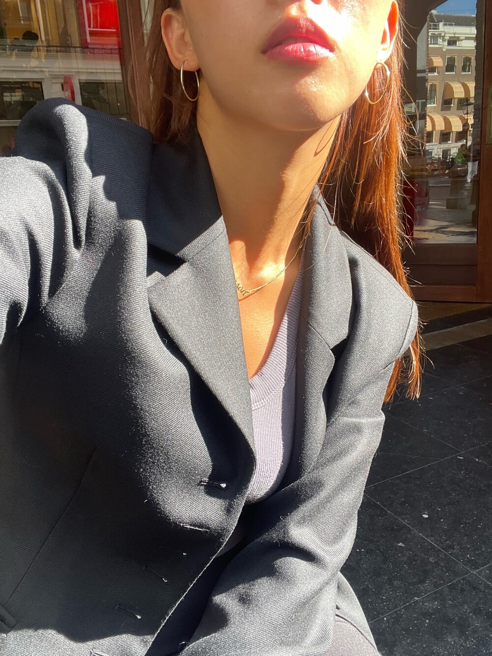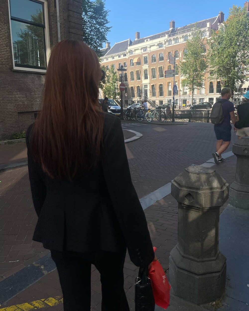 맥시한 소매 기장으로 팔 라인은 슬림해보이구요, 쏘옥 굴려진 허리라인은 들뜸 없이 바디를 감싸주어 감량 효과까지 꽤 좋습니다.