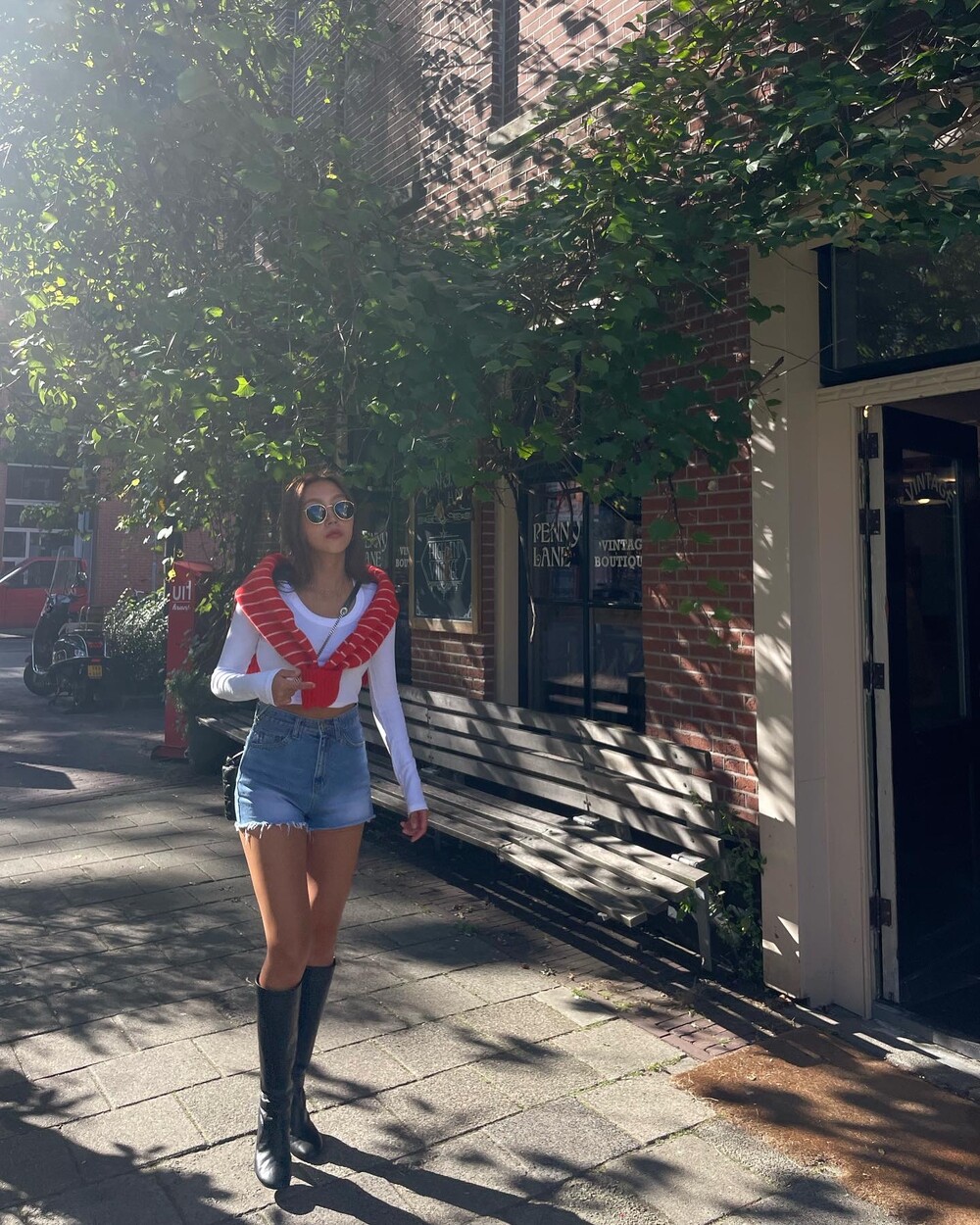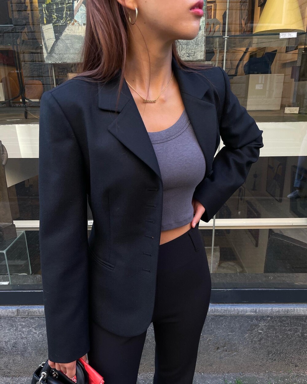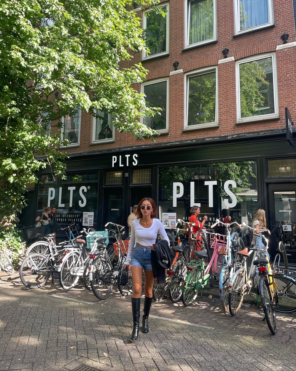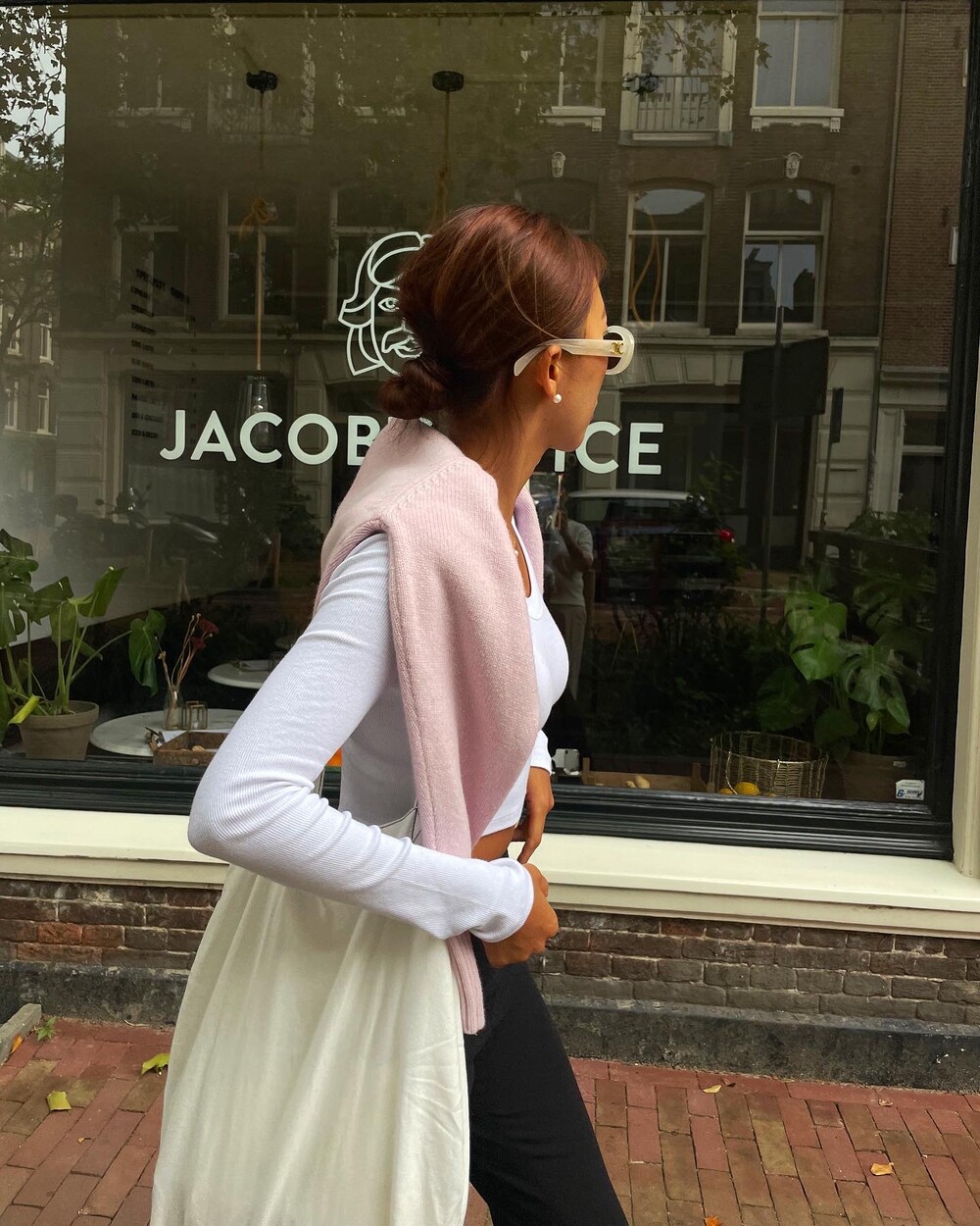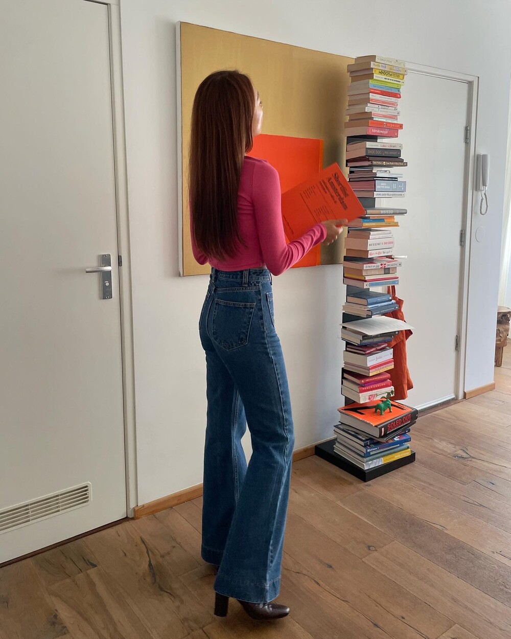 맥시한 소매 기장으로 팔 라인은 슬림해보이구요, 쏘옥 굴려진 허리라인은 들뜸 없이 바디를 감싸주어 감량 효과까지 꽤 좋습니다.
