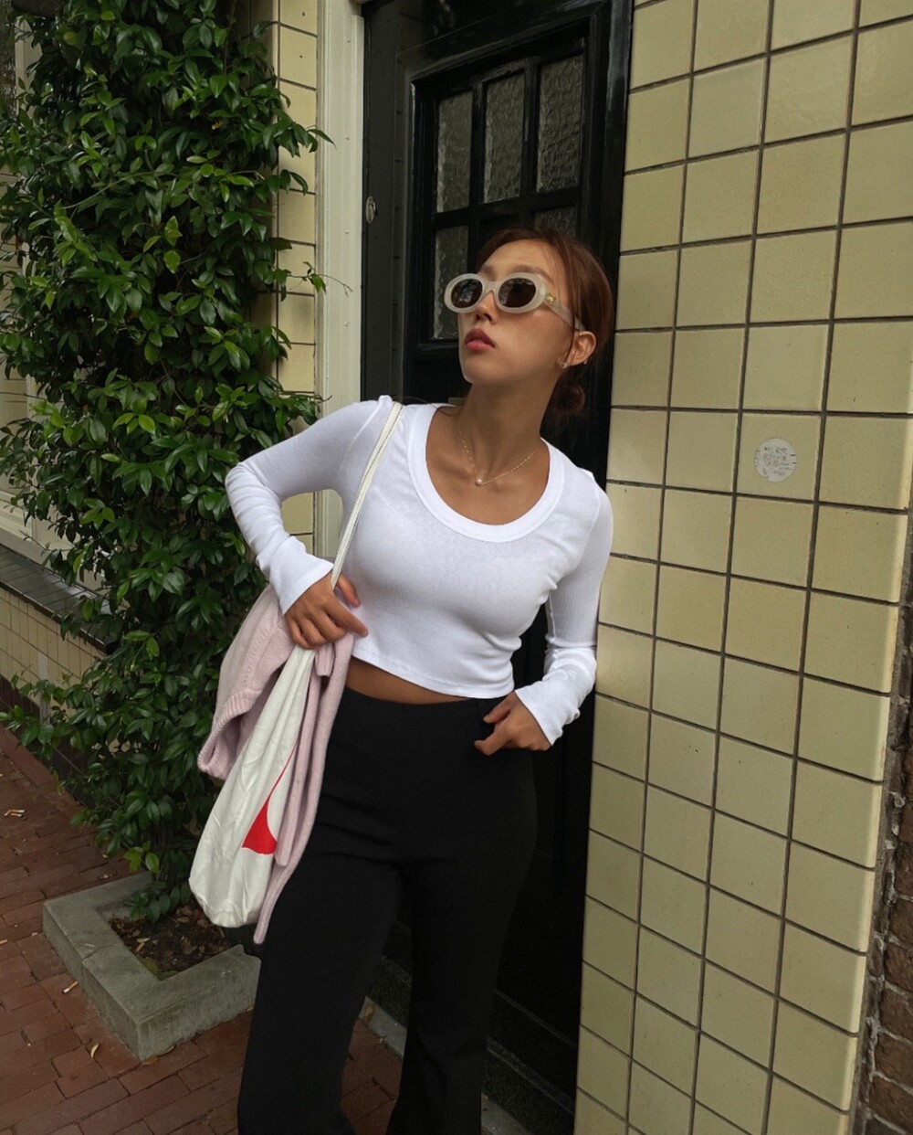 꽤 낭낭한 스판과 모달이라는 촉촉함이 더해져 소프트한 터치를 자랑하는데 이지하게 입기 참 좋네요.