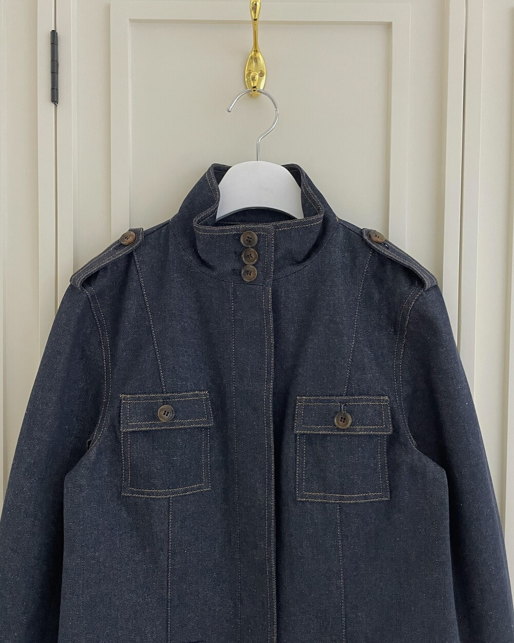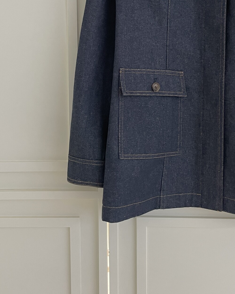 이염 및 물빠짐 방치 가공이 된 NON-FADE DENIM 소재이오나, 과도한 마찰과 뜨거운 열에 미세 이염이 발생할 수 있으니 관리 유의해주세요.