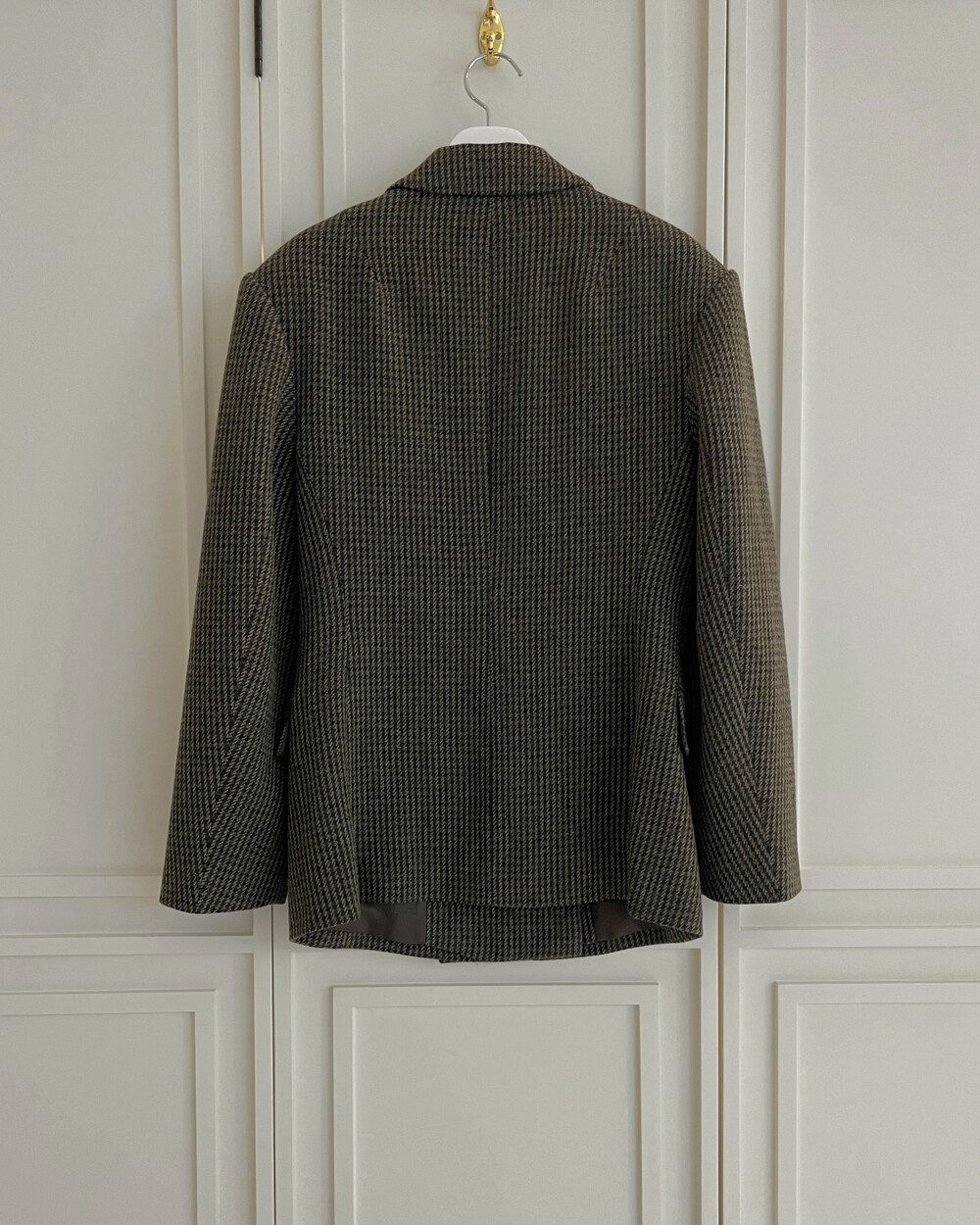남성적 숄더 쉐입에 반하는 유려한 라인의 허리라인은 여성미를 잃지 않는 중요한 요소입니다.