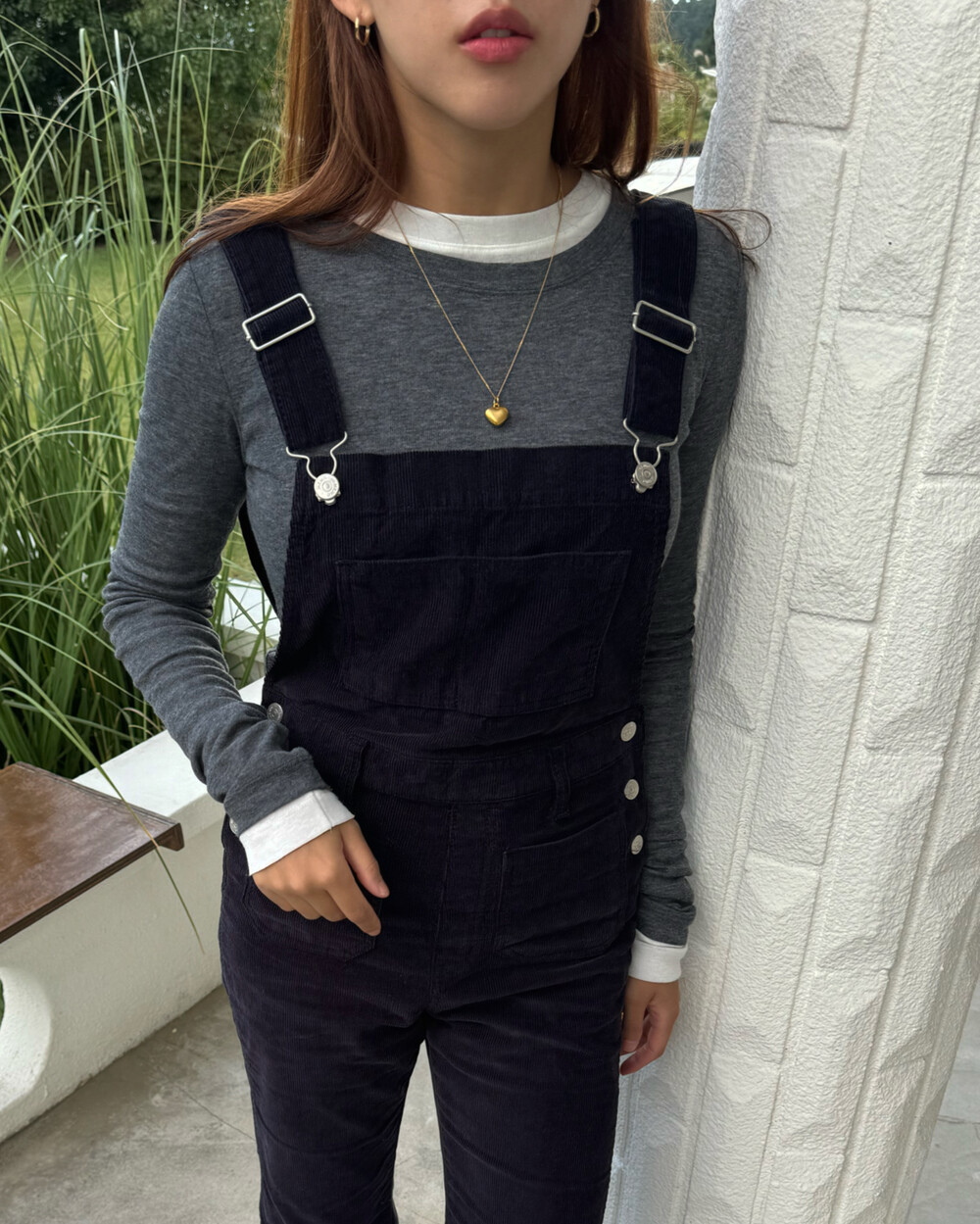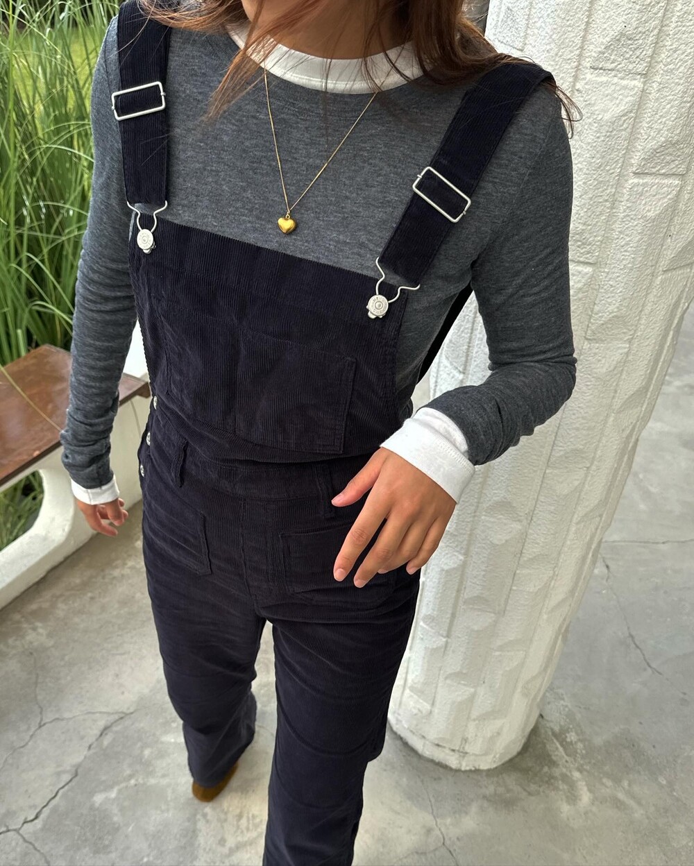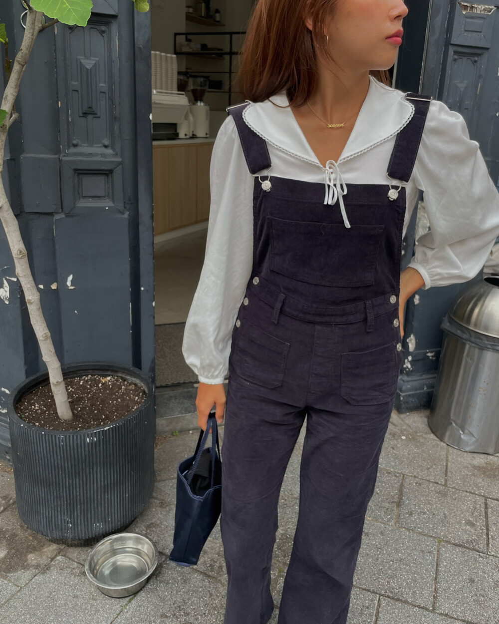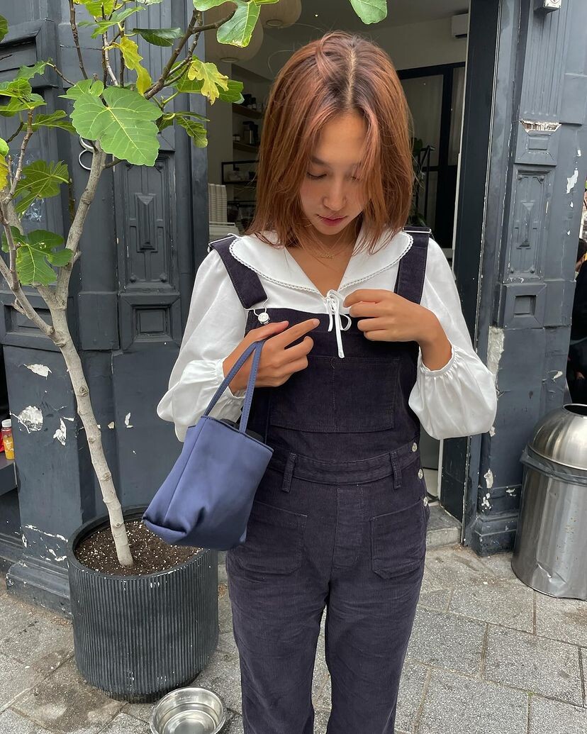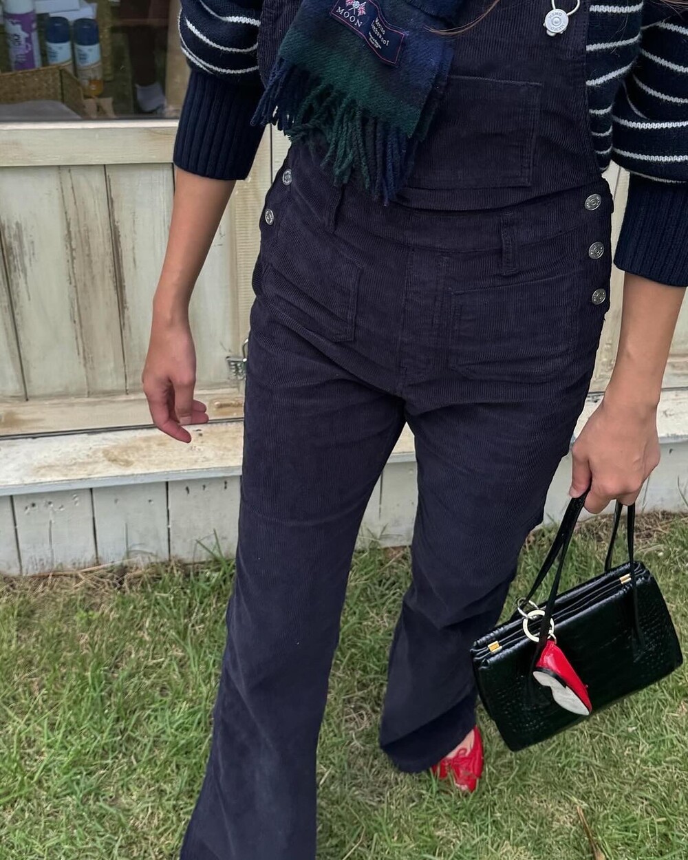 암스텔담에서 현지 멋쟁이 언니들이 눈독 들이던, 오묘한 보라빛이 감도는 짗은 네이비톤의 오버롤입니다.
