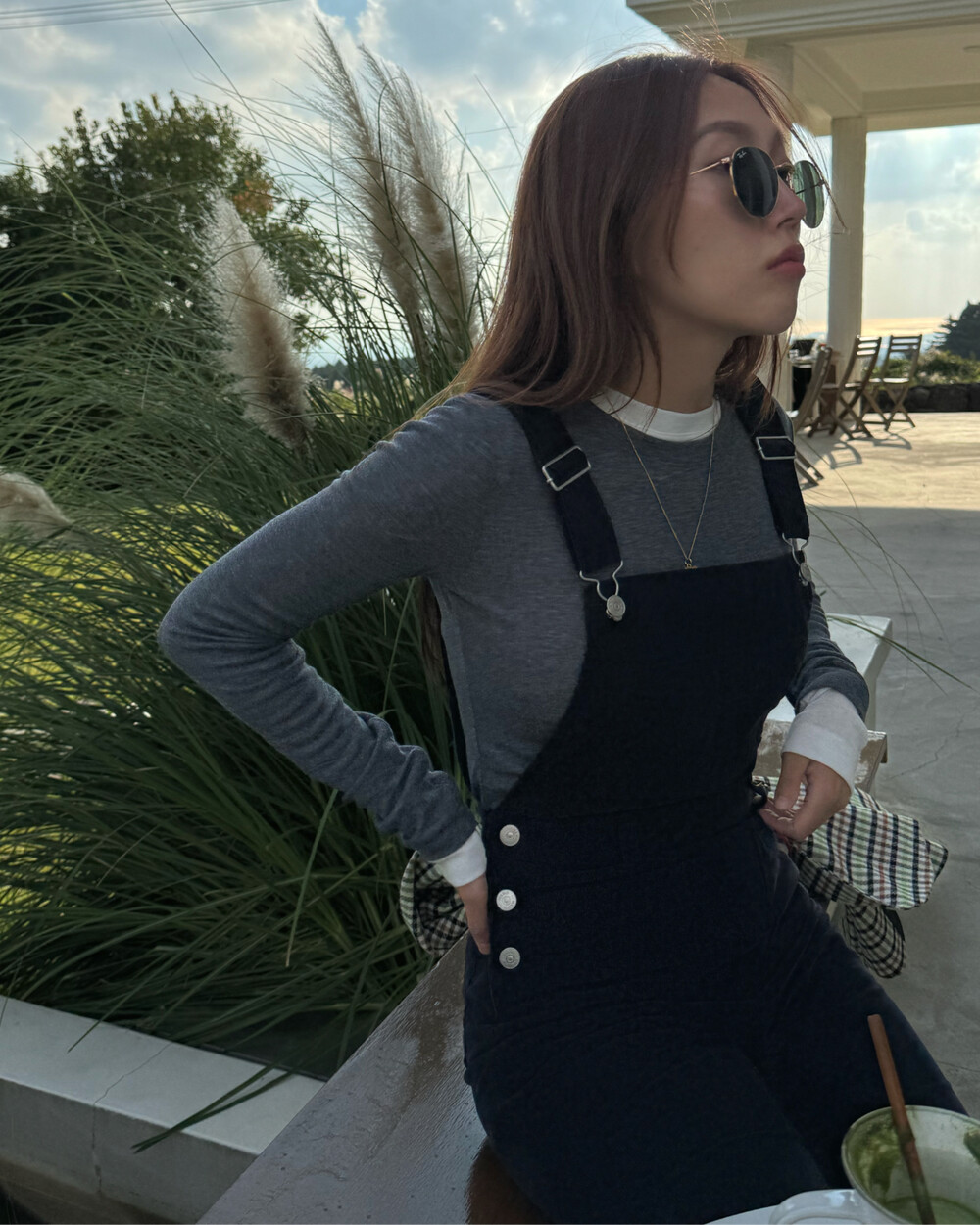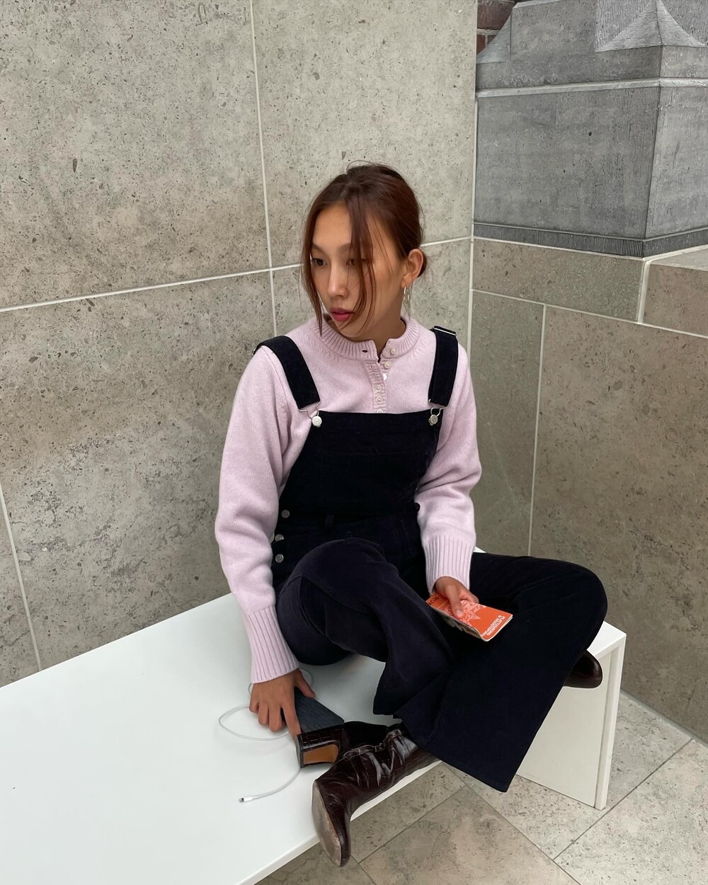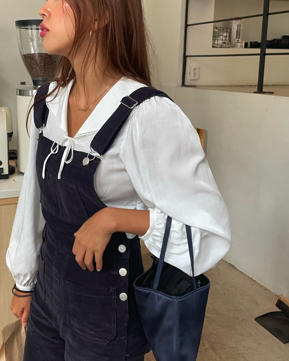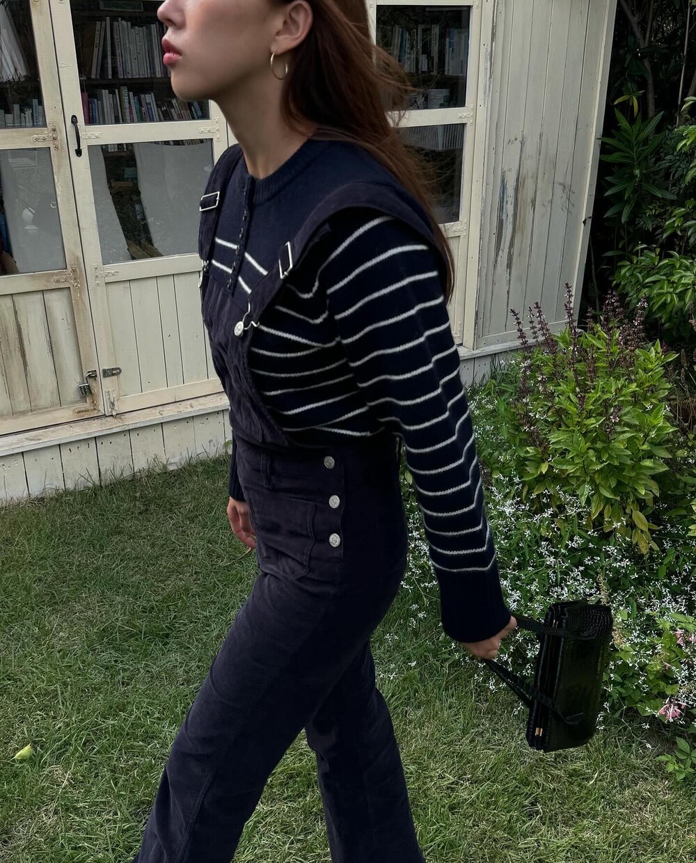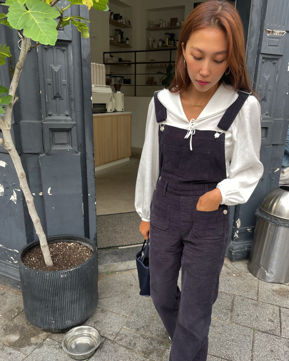 암스텔담에서 현지 멋쟁이 언니들이 눈독 들이던, 오묘한 보라빛이 감도는 짗은 네이비톤의 오버롤입니다.