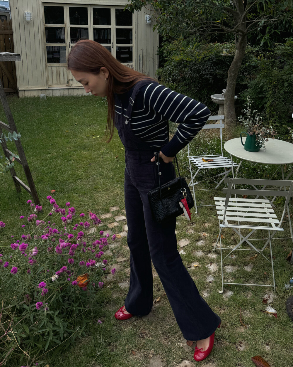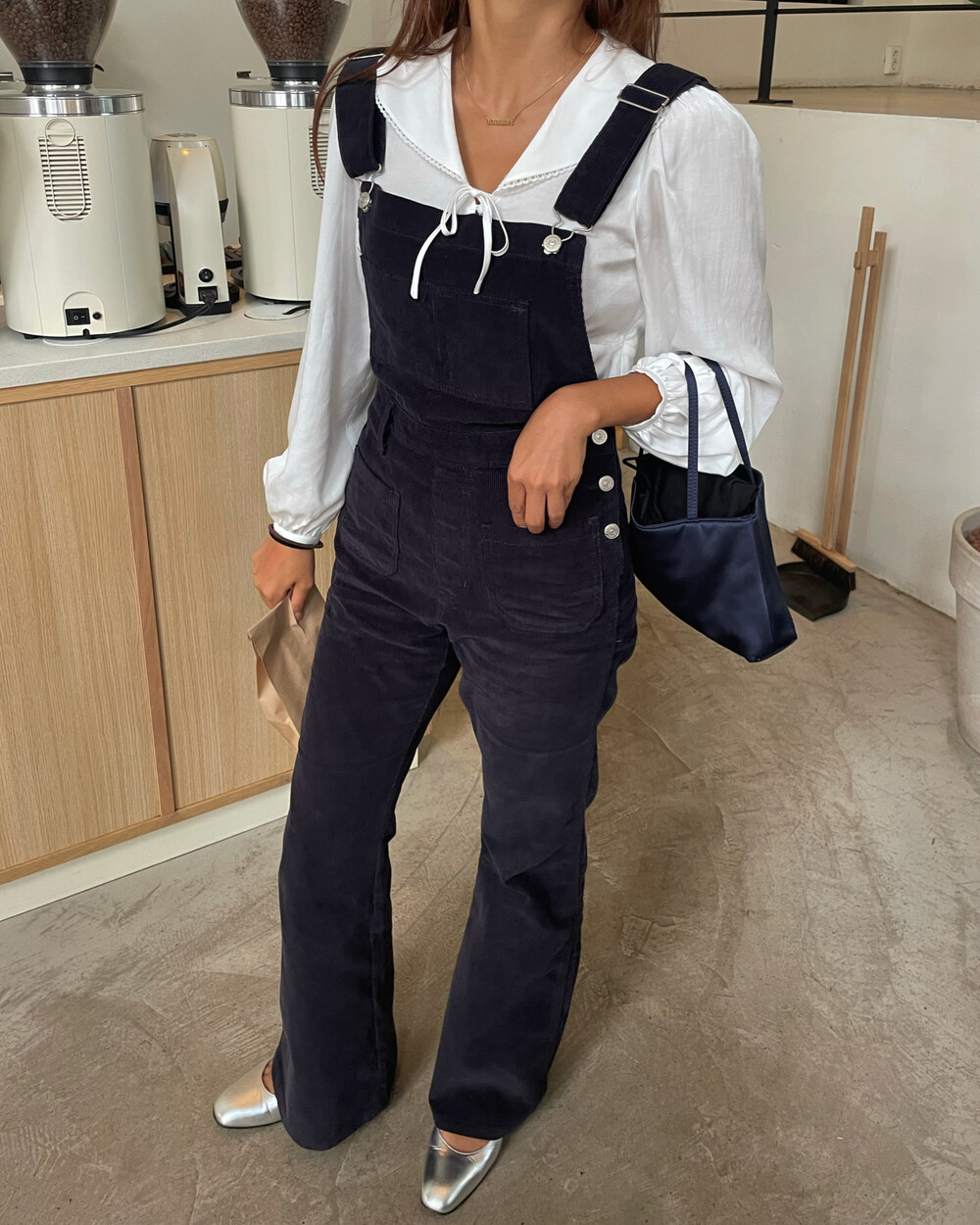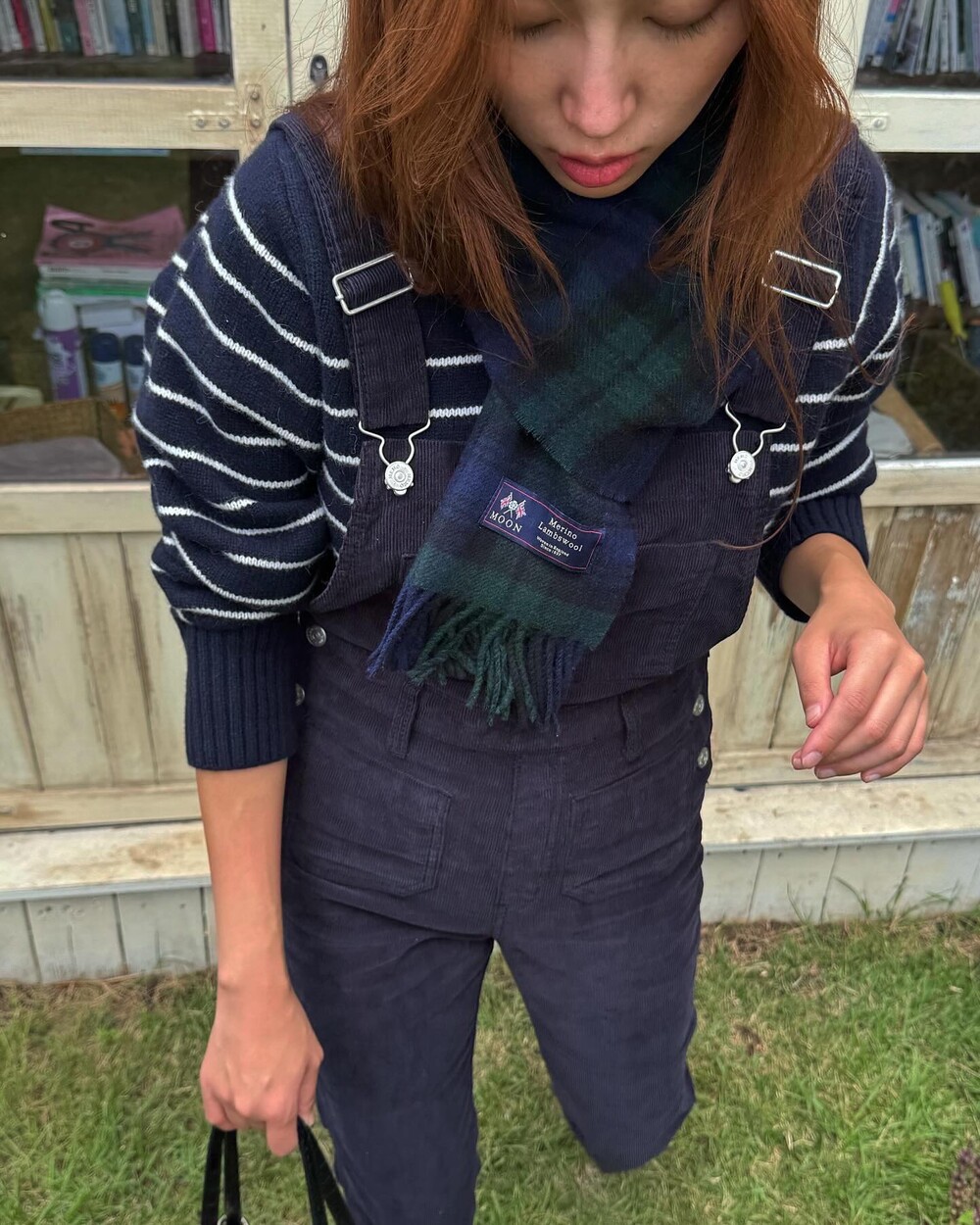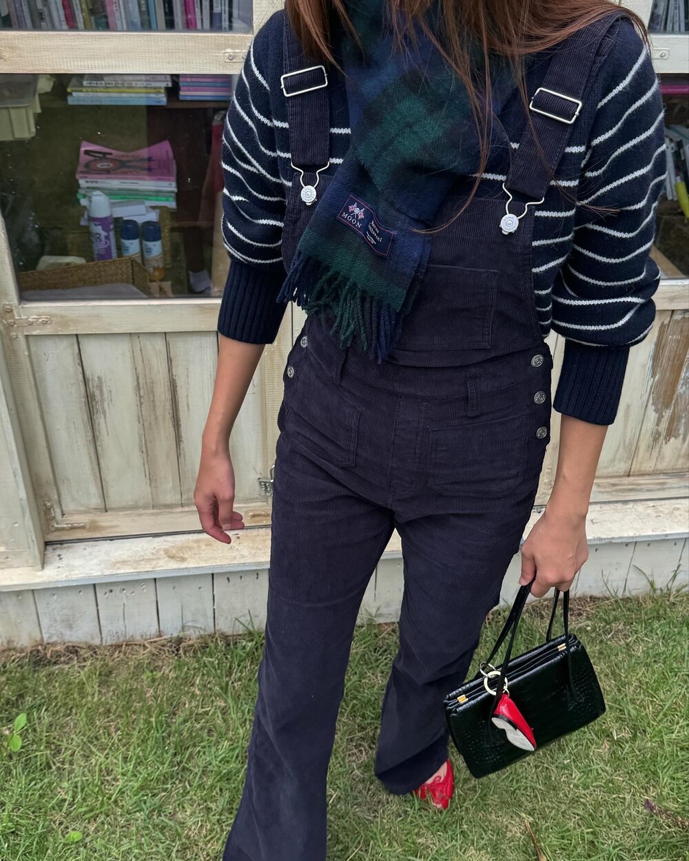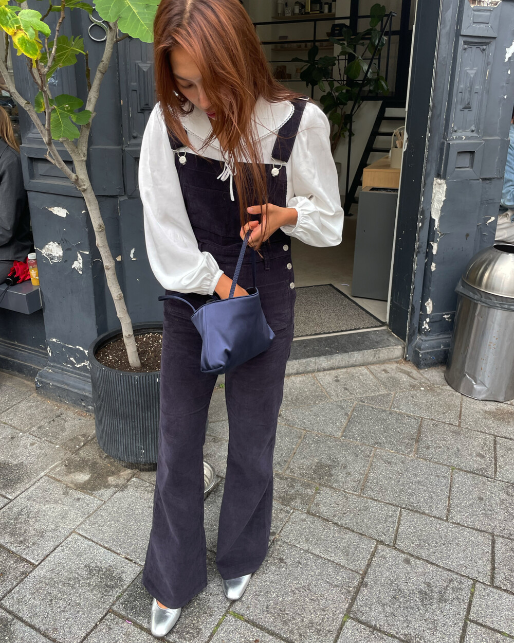 암스텔담에서 현지 멋쟁이 언니들이 눈독 들이던, 오묘한 보라빛이 감도는 짗은 네이비톤의 오버롤입니다.