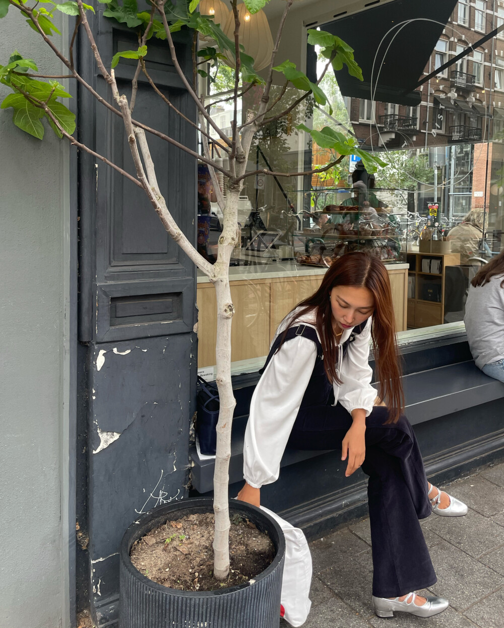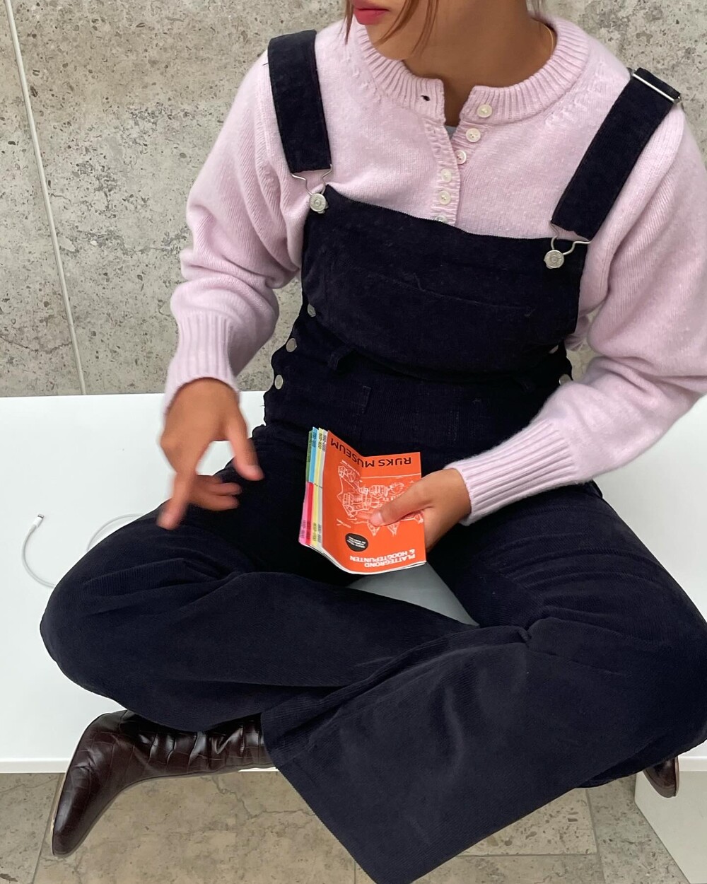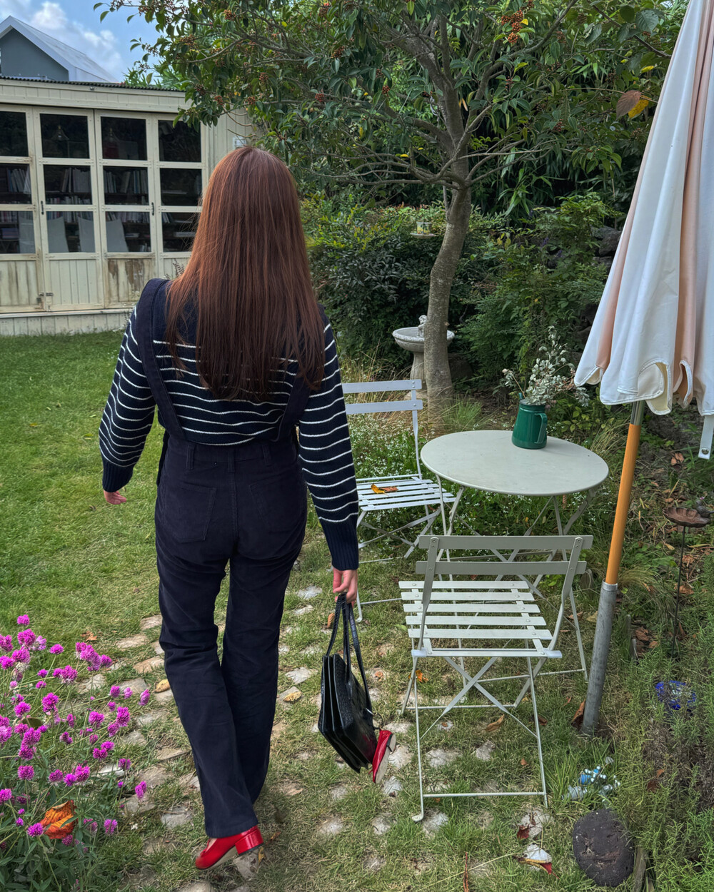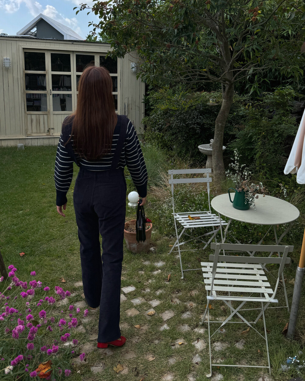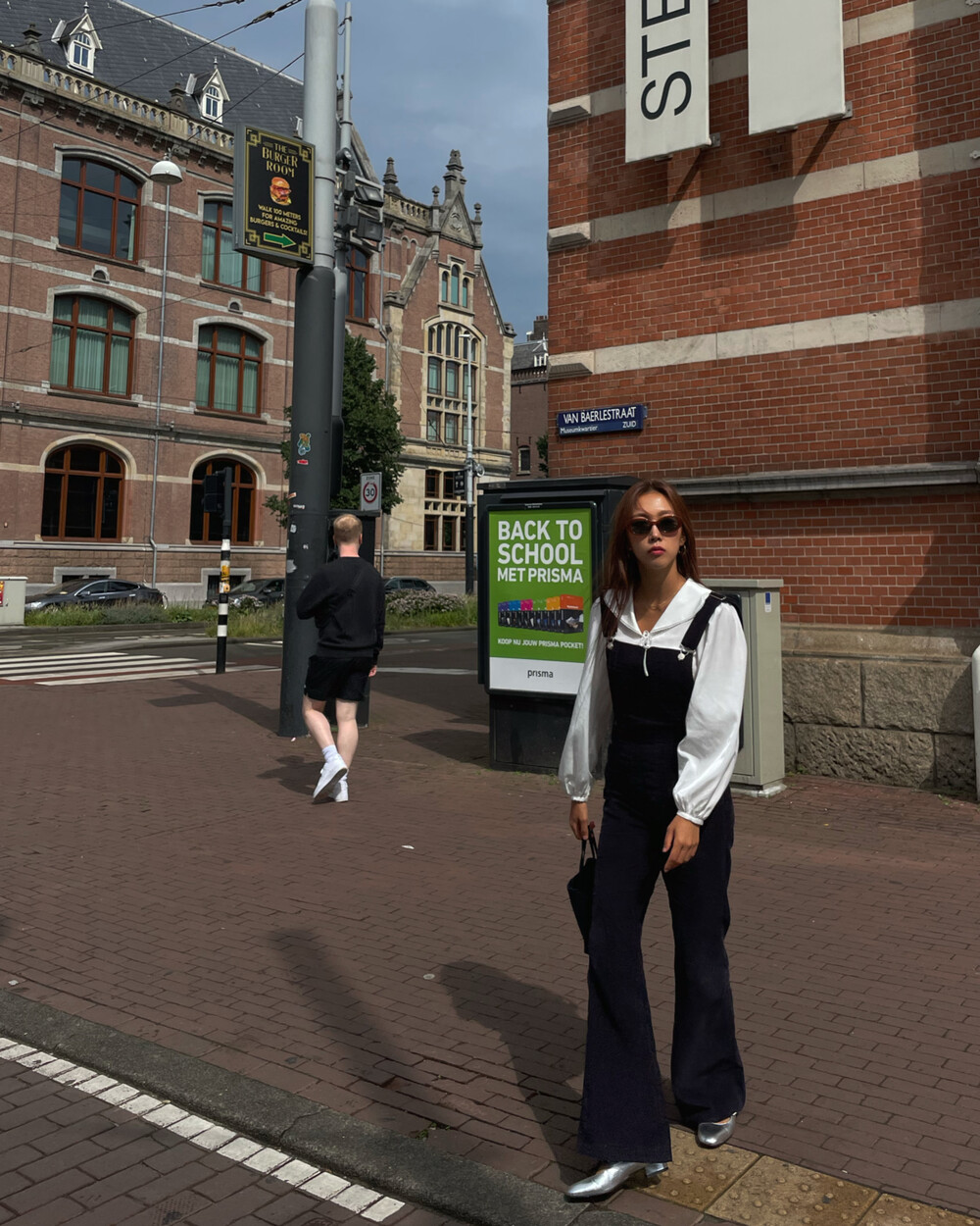 암스텔담에서 현지 멋쟁이 언니들이 눈독 들이던, 오묘한 보라빛이 감도는 짗은 네이비톤의 오버롤입니다.