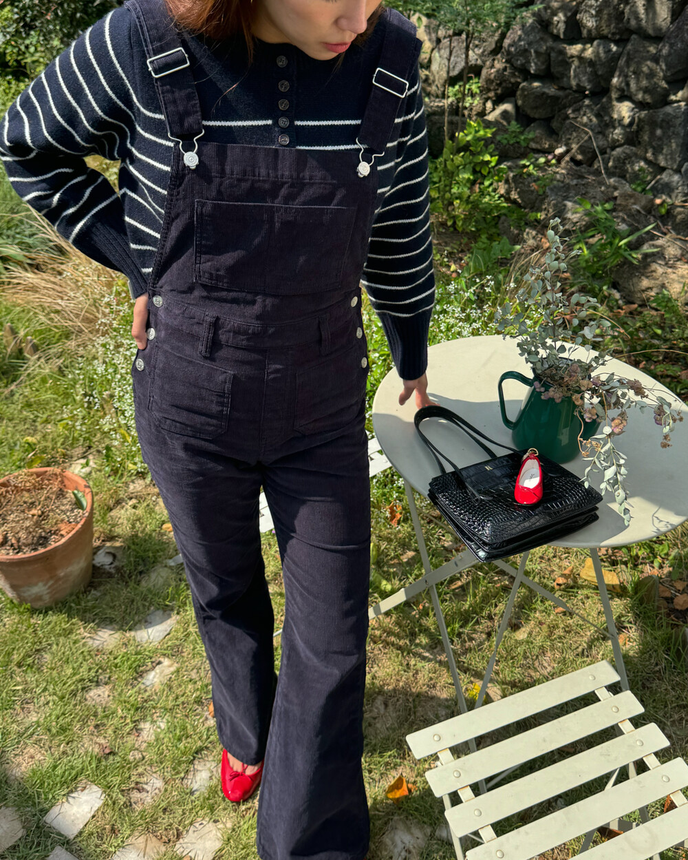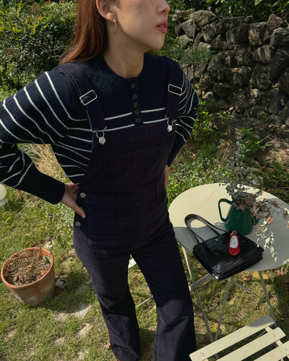 코듀로이 질감에서 느껴지는 특유의 빈티지함과 'JUDE' 디자인 합이 아주 훌륭한데, 적당히 낭실한 플레어 레그라인은 그 무엇보다 사랑스러운 빈티지 유로피언 룩을 연상케 합니다. 스니커즈는 당연하고 발레리나슈즈, 샌들, 로퍼, 부츠, 어그 등등 모든 유형의 예쁜 슈즈들 다 소화하니 입을수록 새롭게 시도해보고 싶은 아웃핏이 무궁무진할거에요.