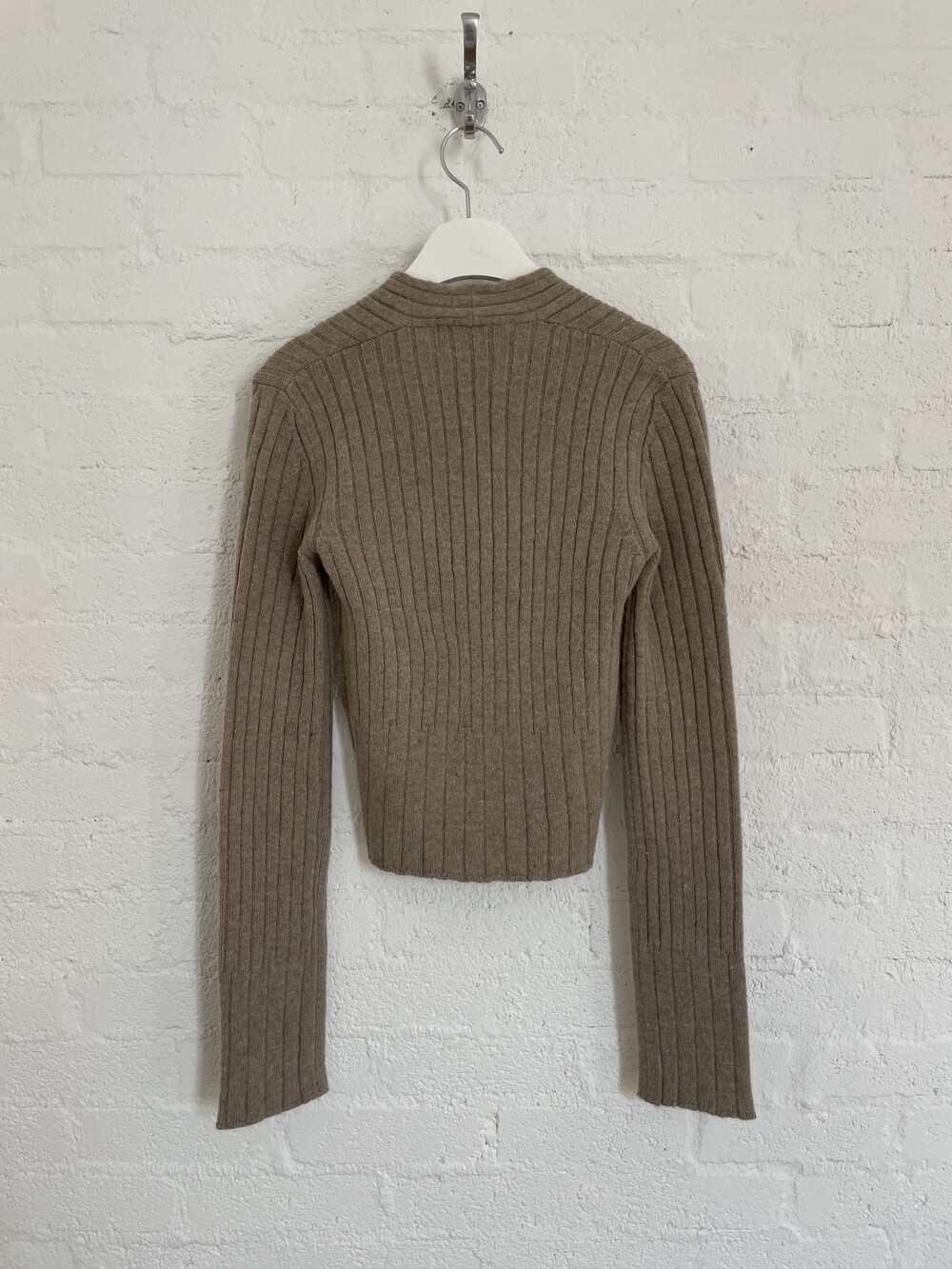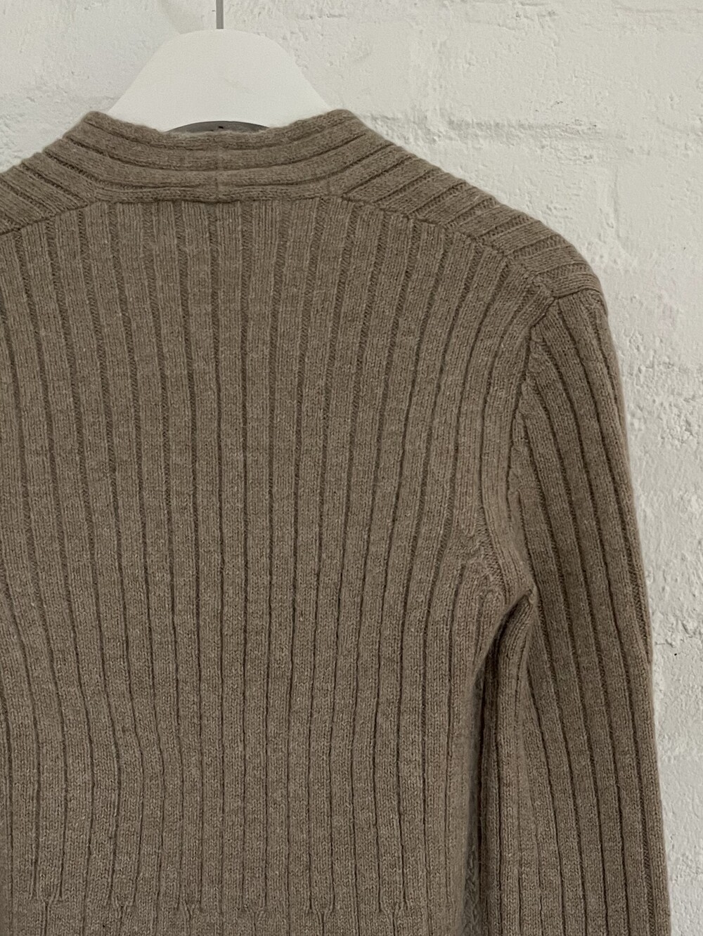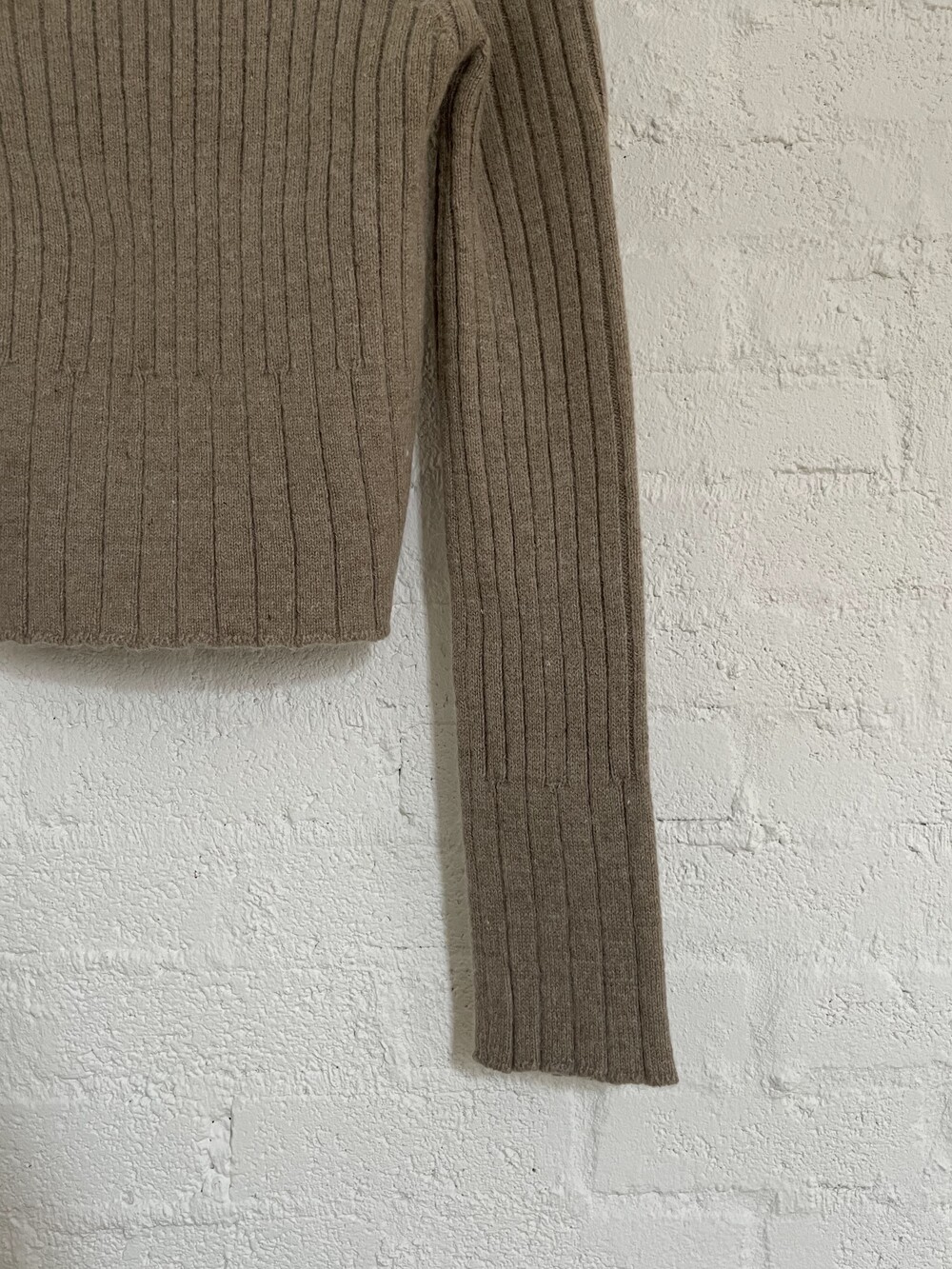 Rip단의 경계가 모호한 이 니트웨어는 소매단으로 향해갈수로 살짝 넓어지는 형태를 띄는데 넉넉한 소매기장, 거기에 상반되는 컴팩트한 바디폼의 발란스가 무척 조화롭지요.