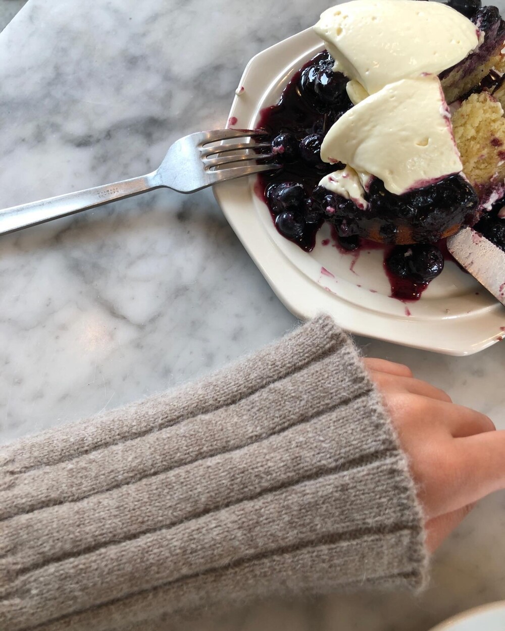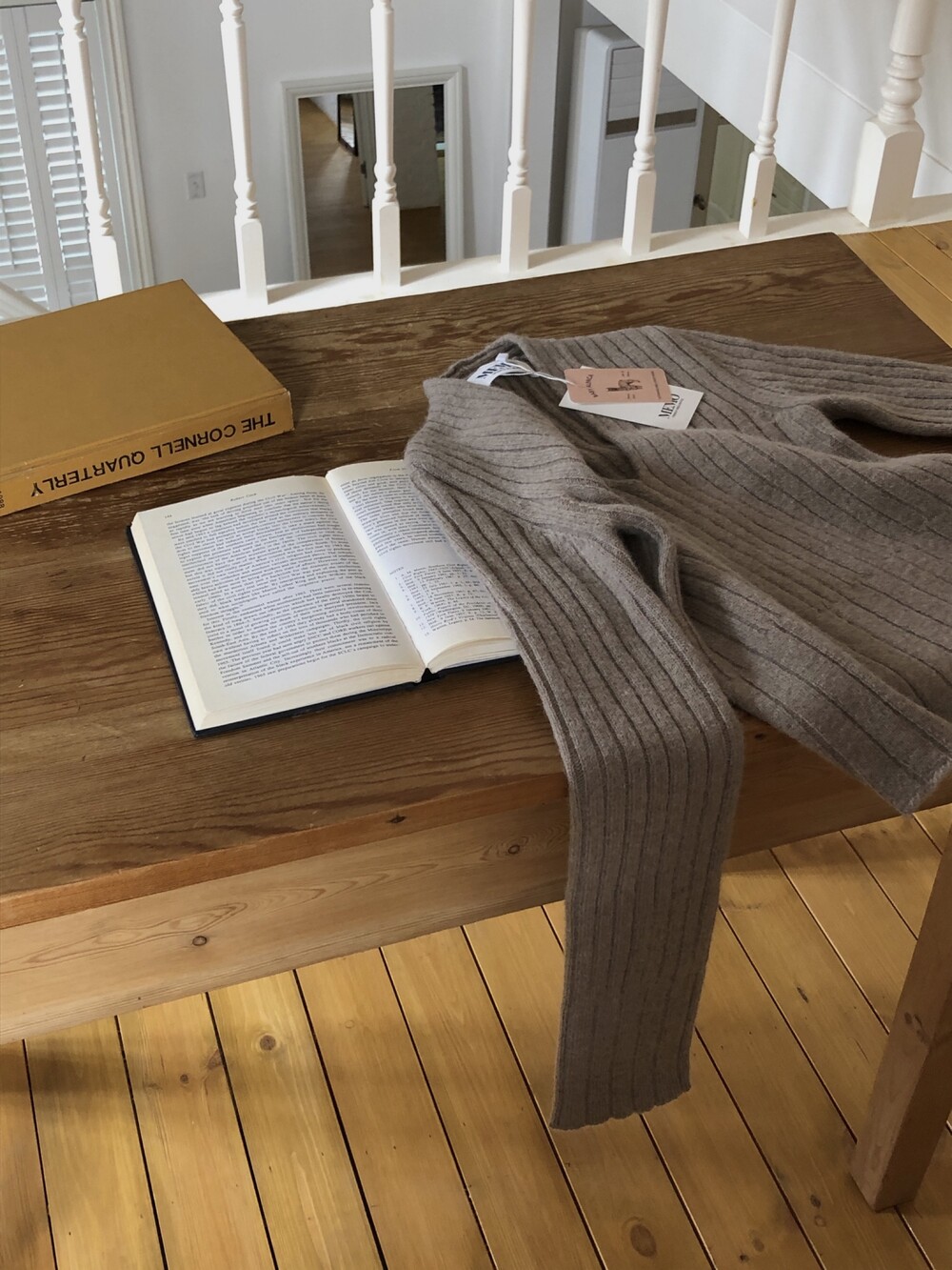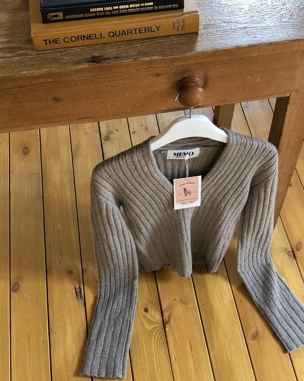 Rip단의 경계가 모호한 이 니트웨어는 소매단으로 향해갈수로 살짝 넓어지는 형태를 띄는데 넉넉한 소매기장, 거기에 상반되는 컴팩트한 바디폼의 발란스가 무척 조화롭지요.