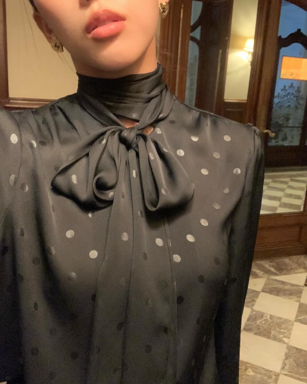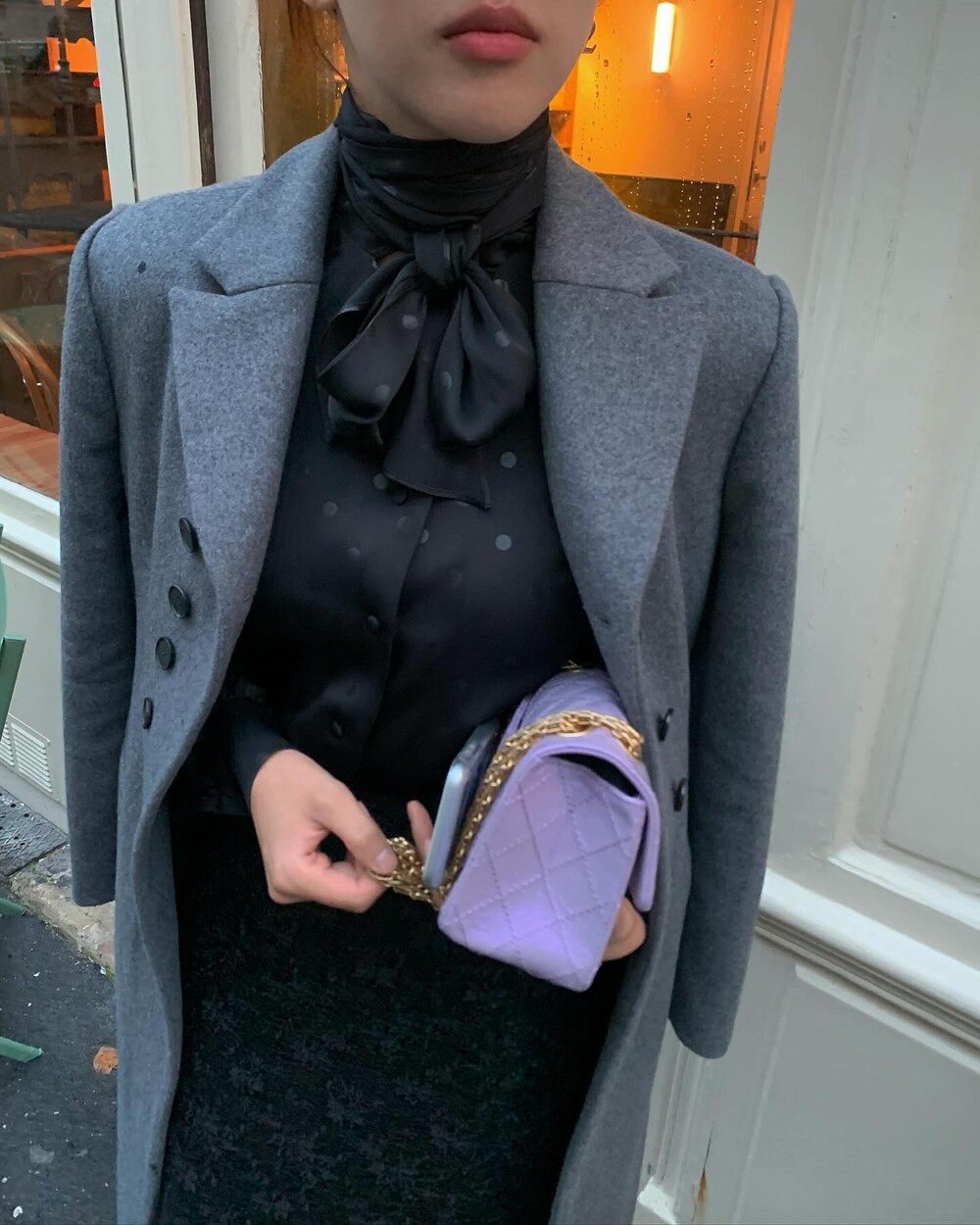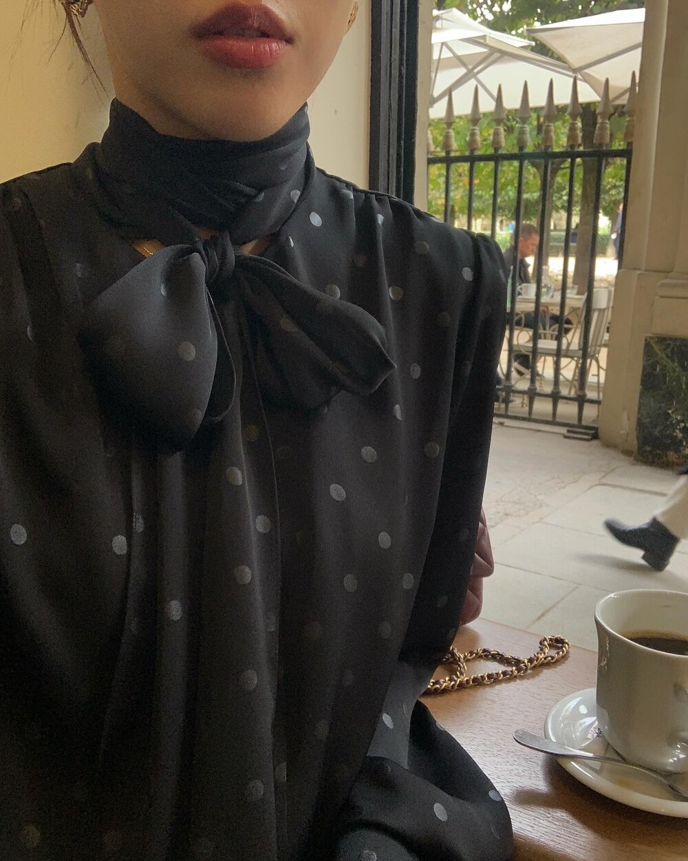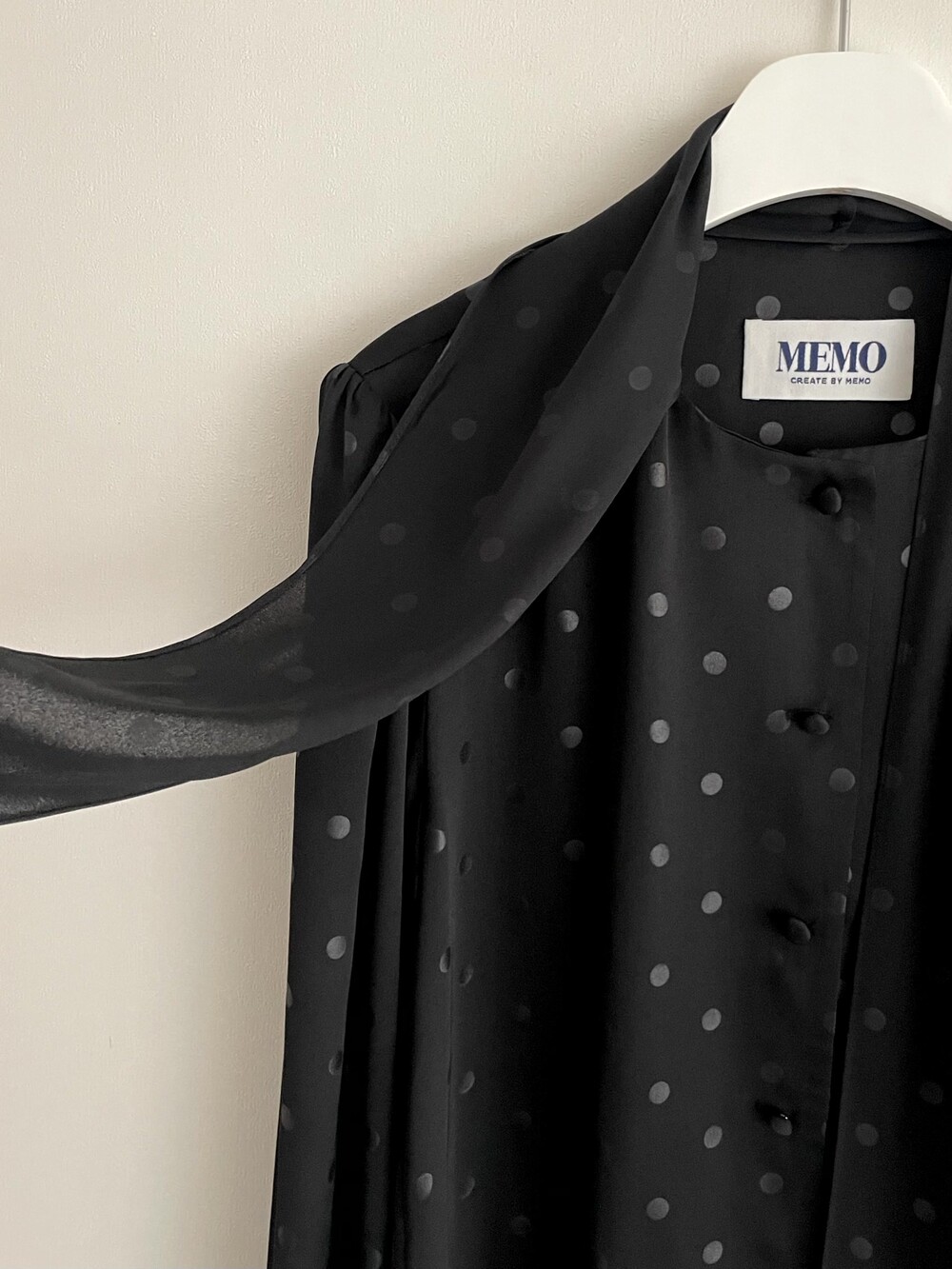 MEMO의 타이블라우스가 유달리 존재감이 있고 더 좋은 점은, 타이 면적이 꽤 넓고 목에 3번도 충분히 감길만큼의 풀 맥시 기장이라, 다양한 스타일링이 가능하다는 점이 가장 클 것 같네요. 가타부타 옷이라는 것이 편하고 손이 많이 가는 것이 제일 아니겠습니까!