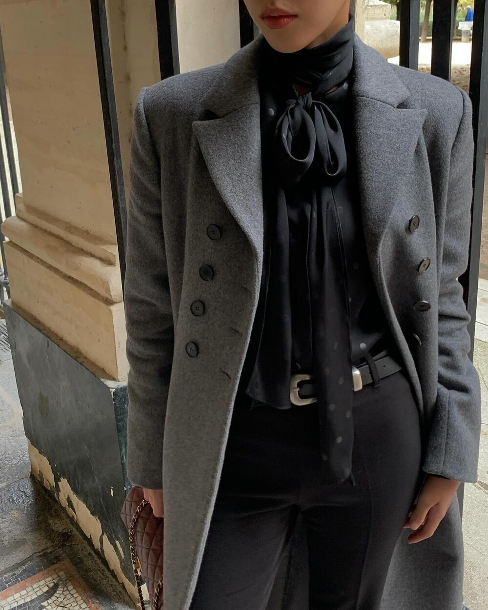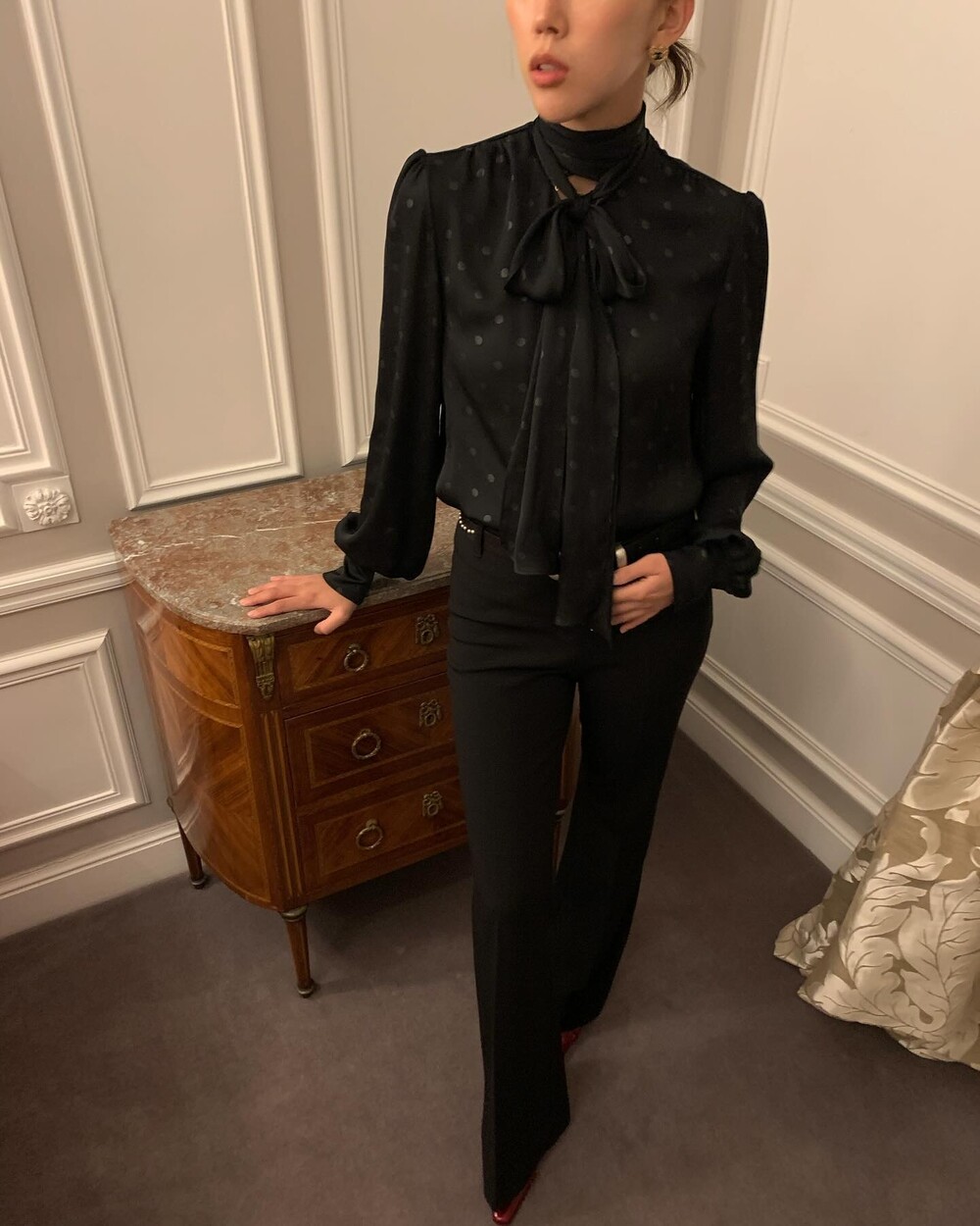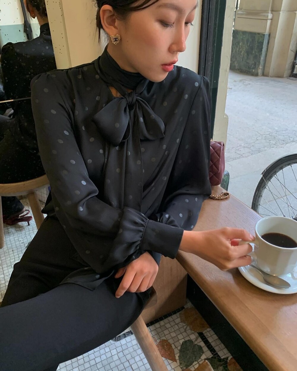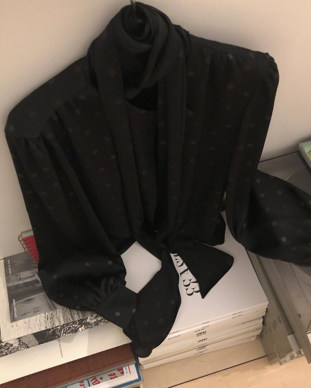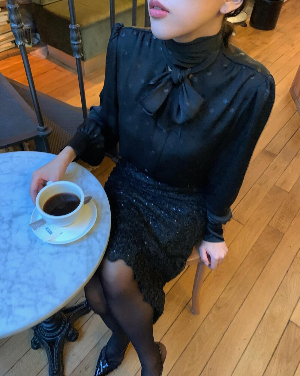 MEMO의 타이블라우스가 유달리 존재감이 있고 더 좋은 점은, 타이 면적이 꽤 넓고 목에 3번도 충분히 감길만큼의 풀 맥시 기장이라, 다양한 스타일링이 가능하다는 점이 가장 클 것 같네요. 가타부타 옷이라는 것이 편하고 손이 많이 가는 것이 제일 아니겠습니까!