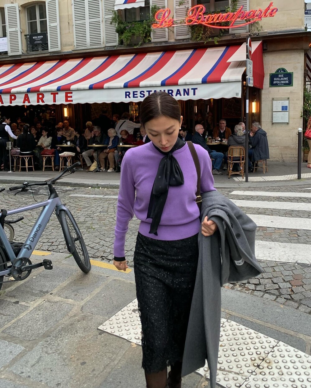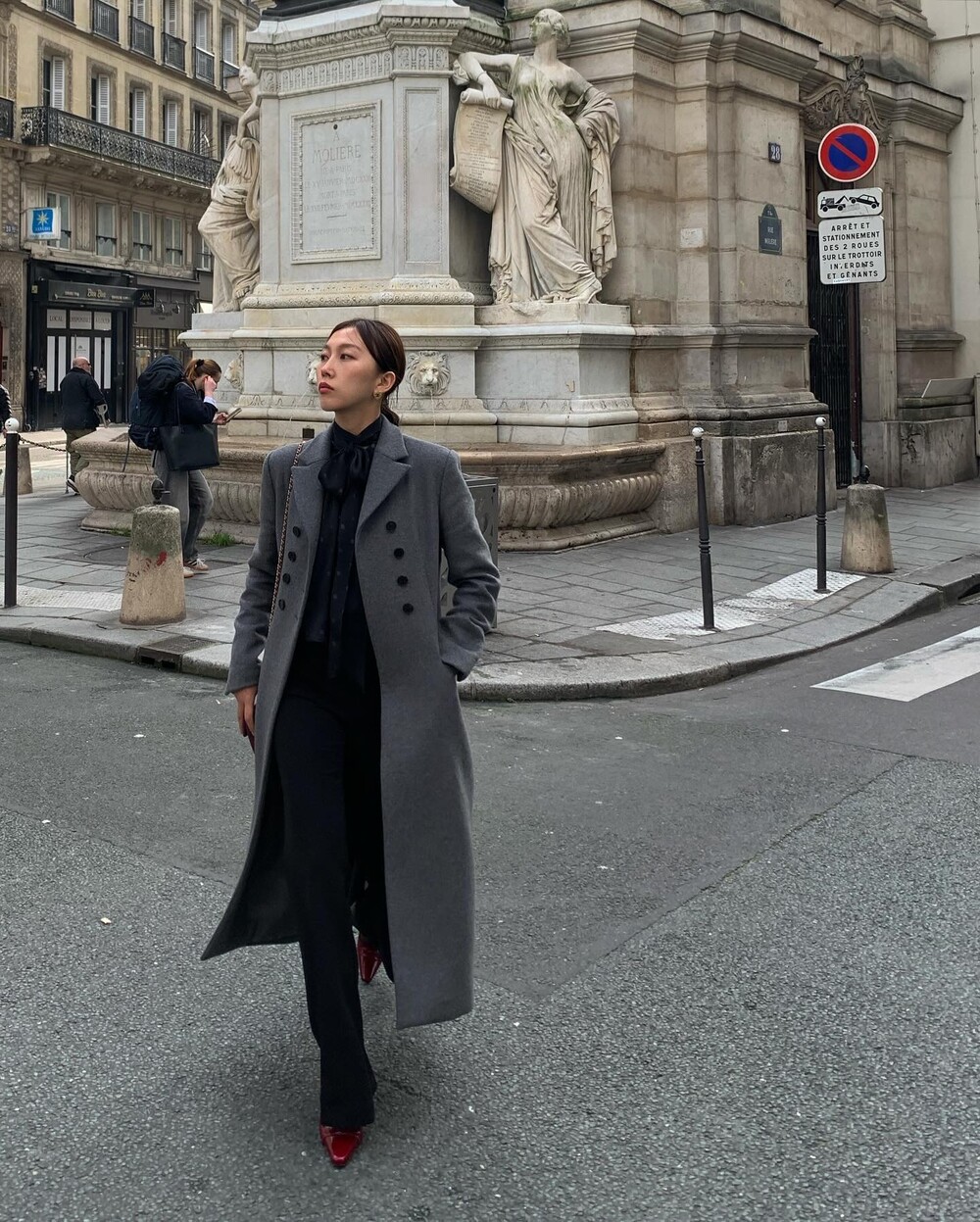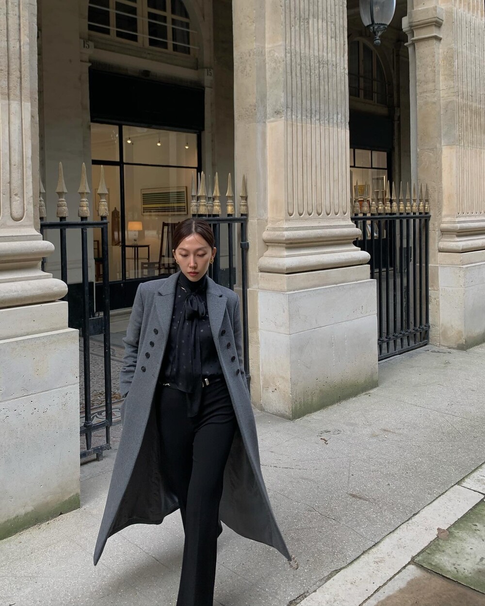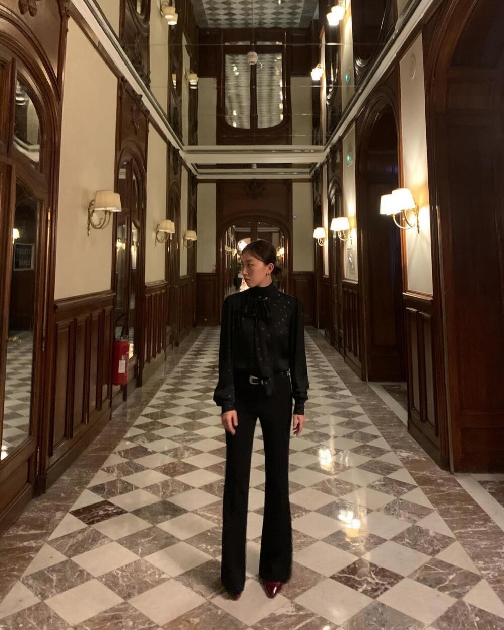 MEMO의 타이블라우스가 유달리 존재감이 있고 더 좋은 점은, 타이 면적이 꽤 넓고 목에 3번도 충분히 감길만큼의 풀 맥시 기장이라, 다양한 스타일링이 가능하다는 점이 가장 클 것 같네요. 가타부타 옷이라는 것이 편하고 손이 많이 가는 것이 제일 아니겠습니까!