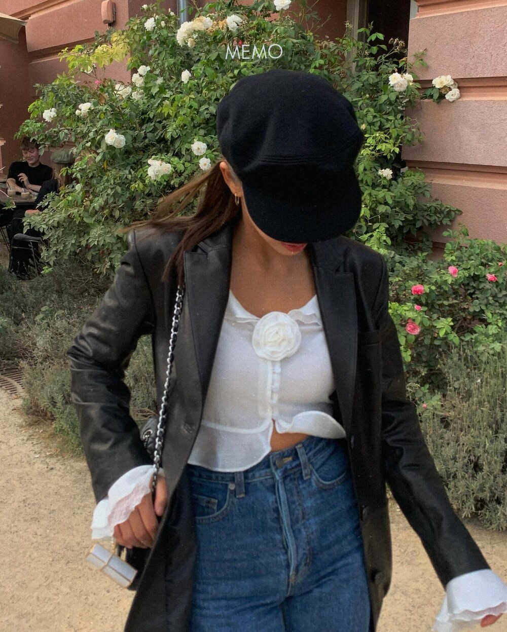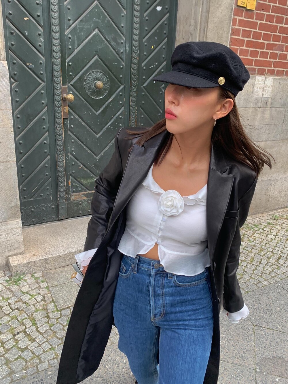 맥시한 소매기장에 깜찍하게도 발란스를 맞춘 크롭한 바디기장은 룩이 올드하지 않도록 유도하며, 약간의 자유분방함, 반항기마저 느껴진답니다!