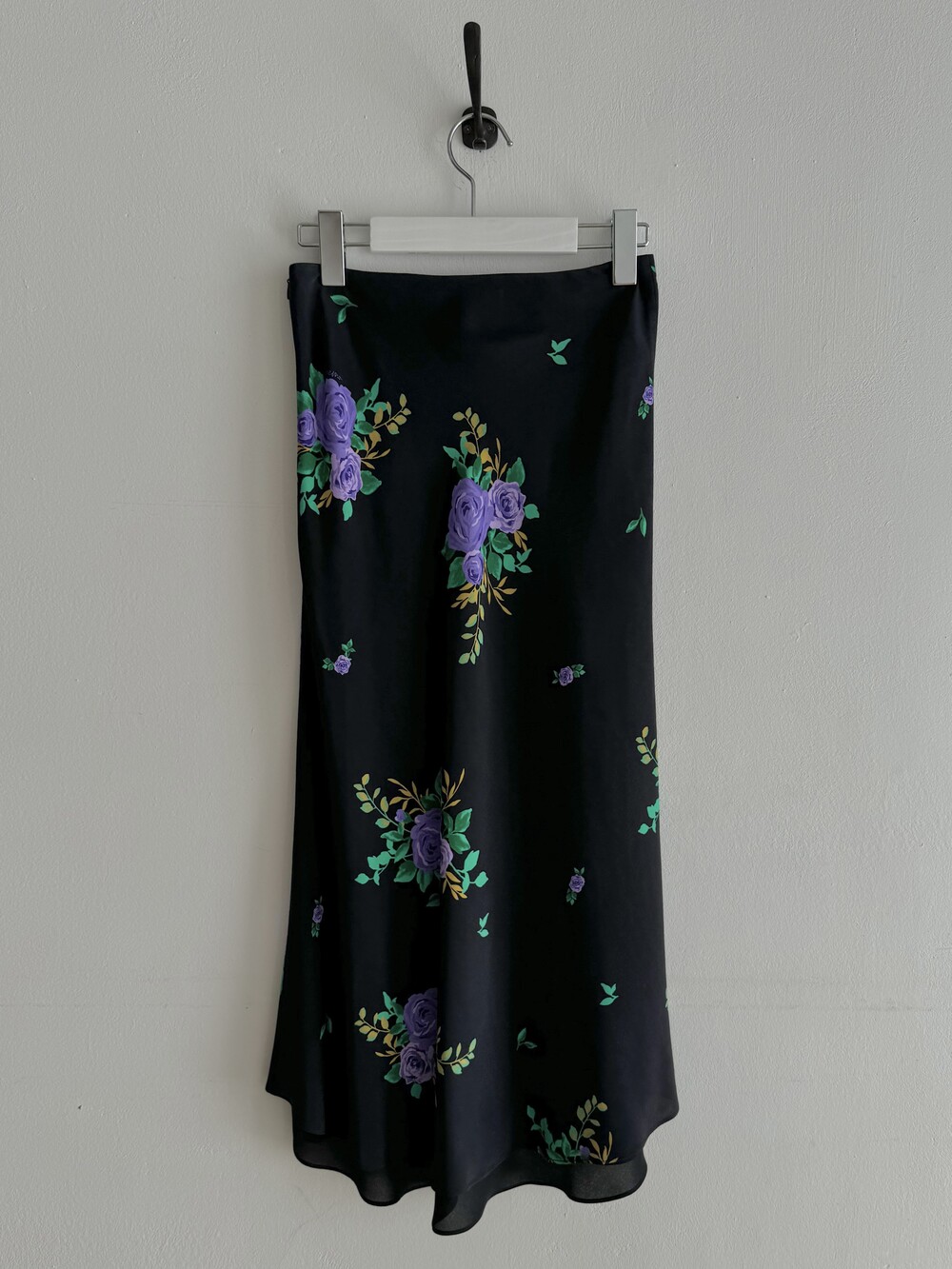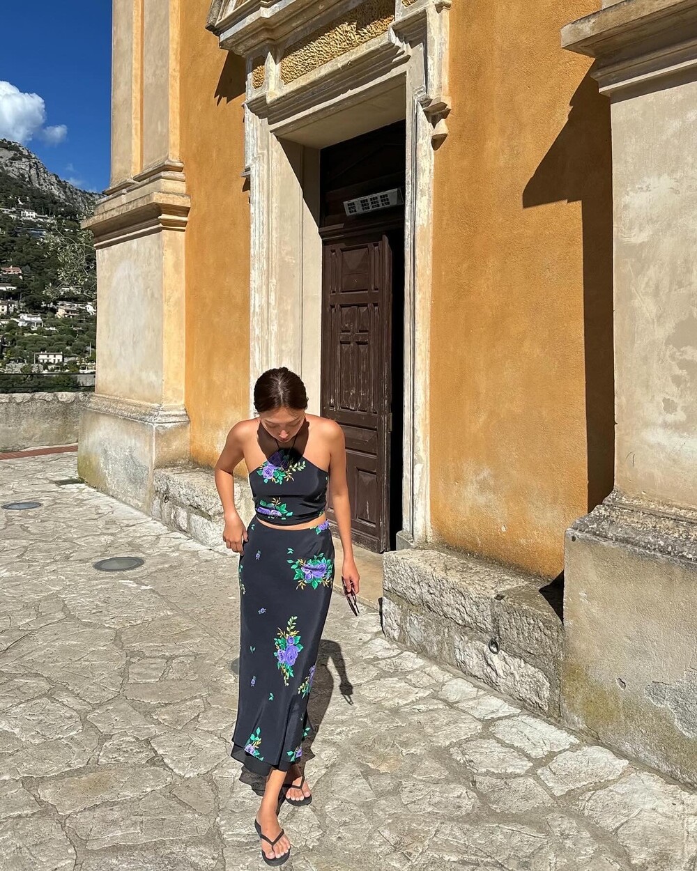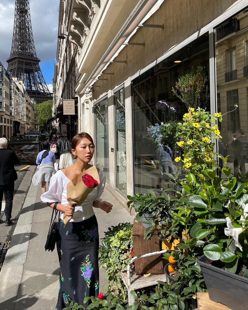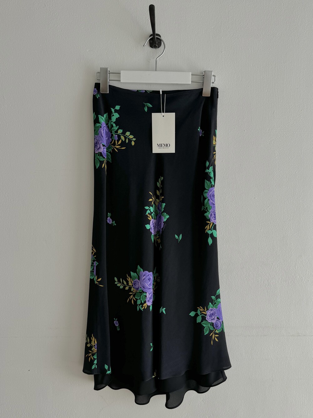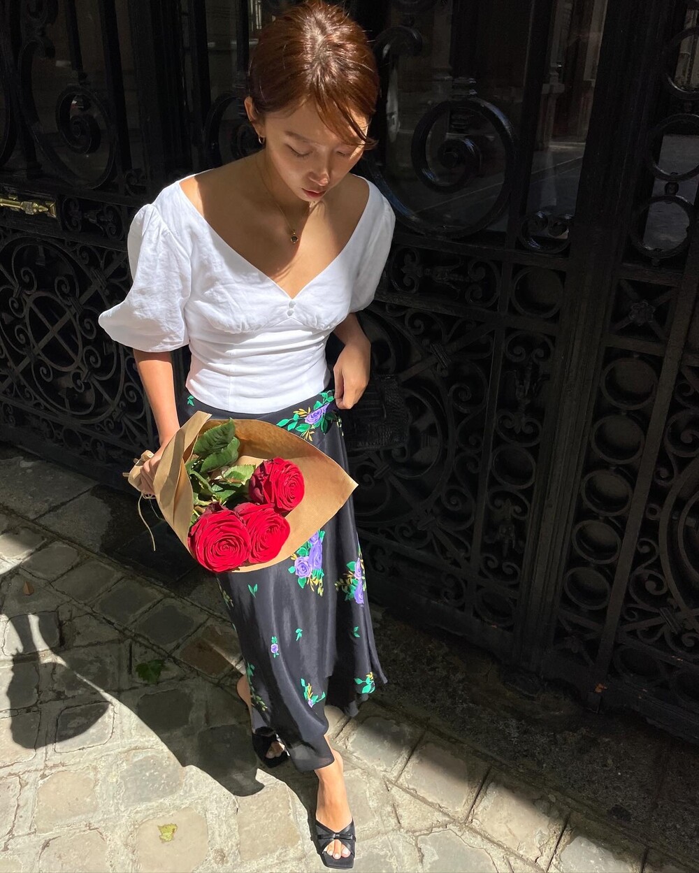 스커트 밑단에 조금 더 보여지는 쉬폰안감은 비침을 방지하는 기능 뿐 아니라 쉬어하고 페미닌한 룩으로 빌드업해줍니다.