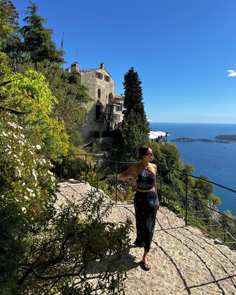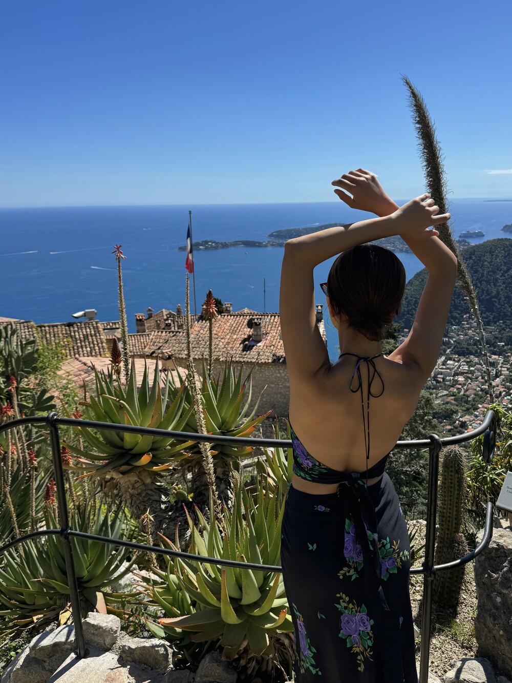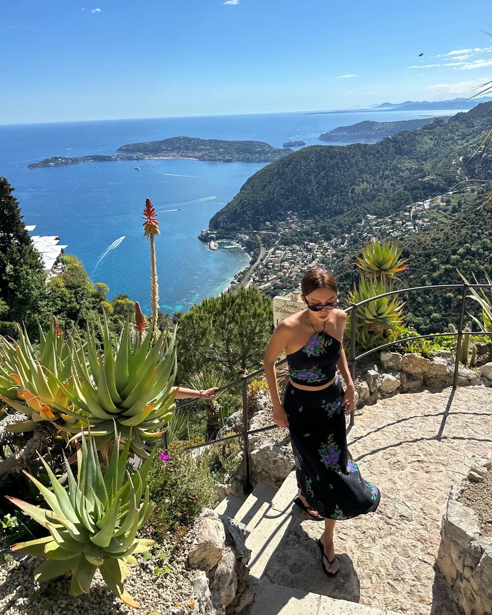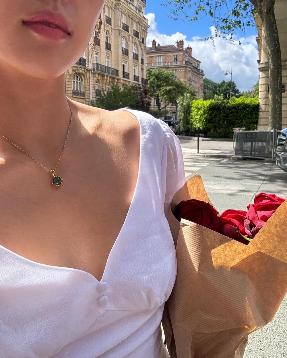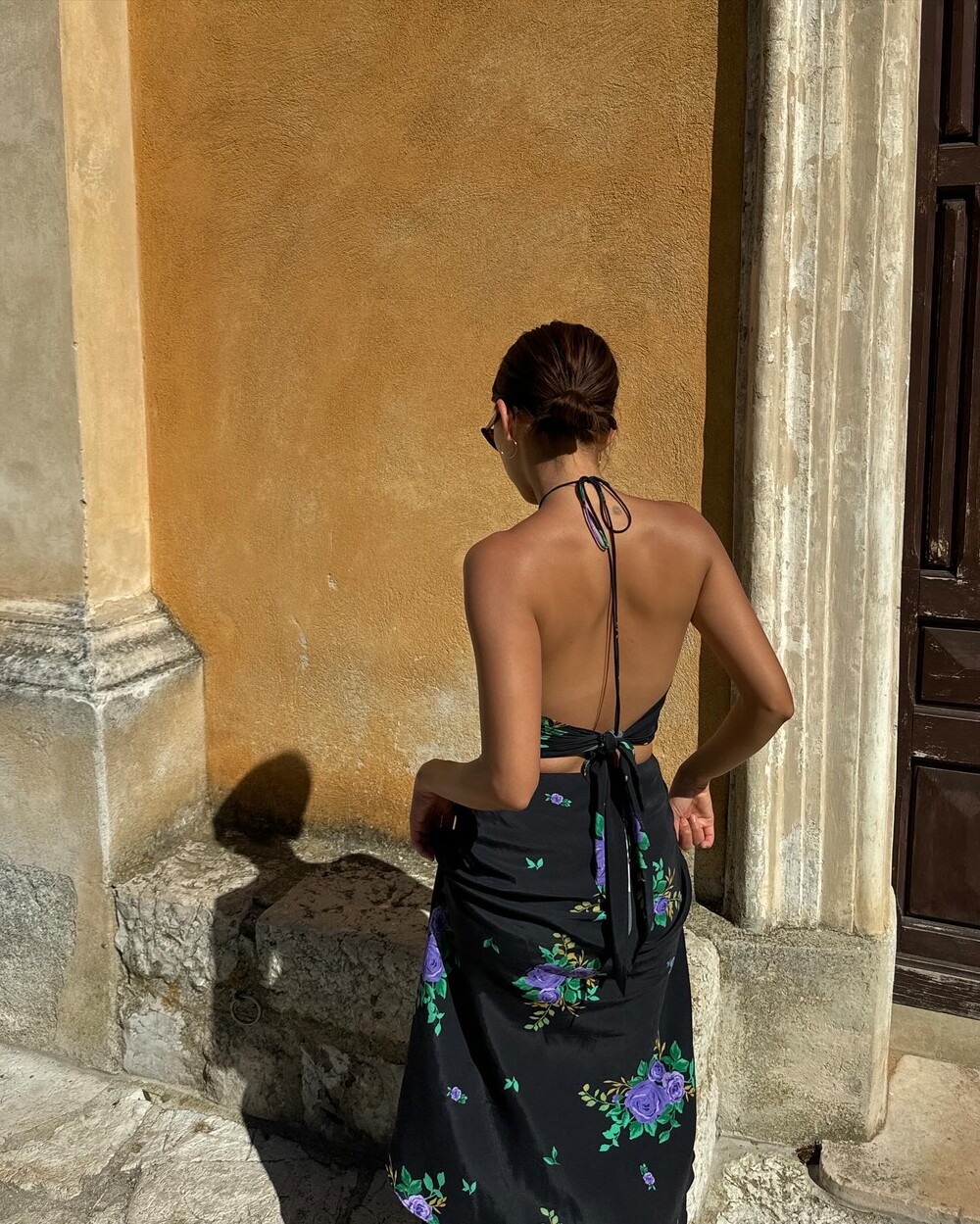 스커트 밑단에 조금 더 보여지는 쉬폰안감은 비침을 방지하는 기능 뿐 아니라 쉬어하고 페미닌한 룩으로 빌드업해줍니다.