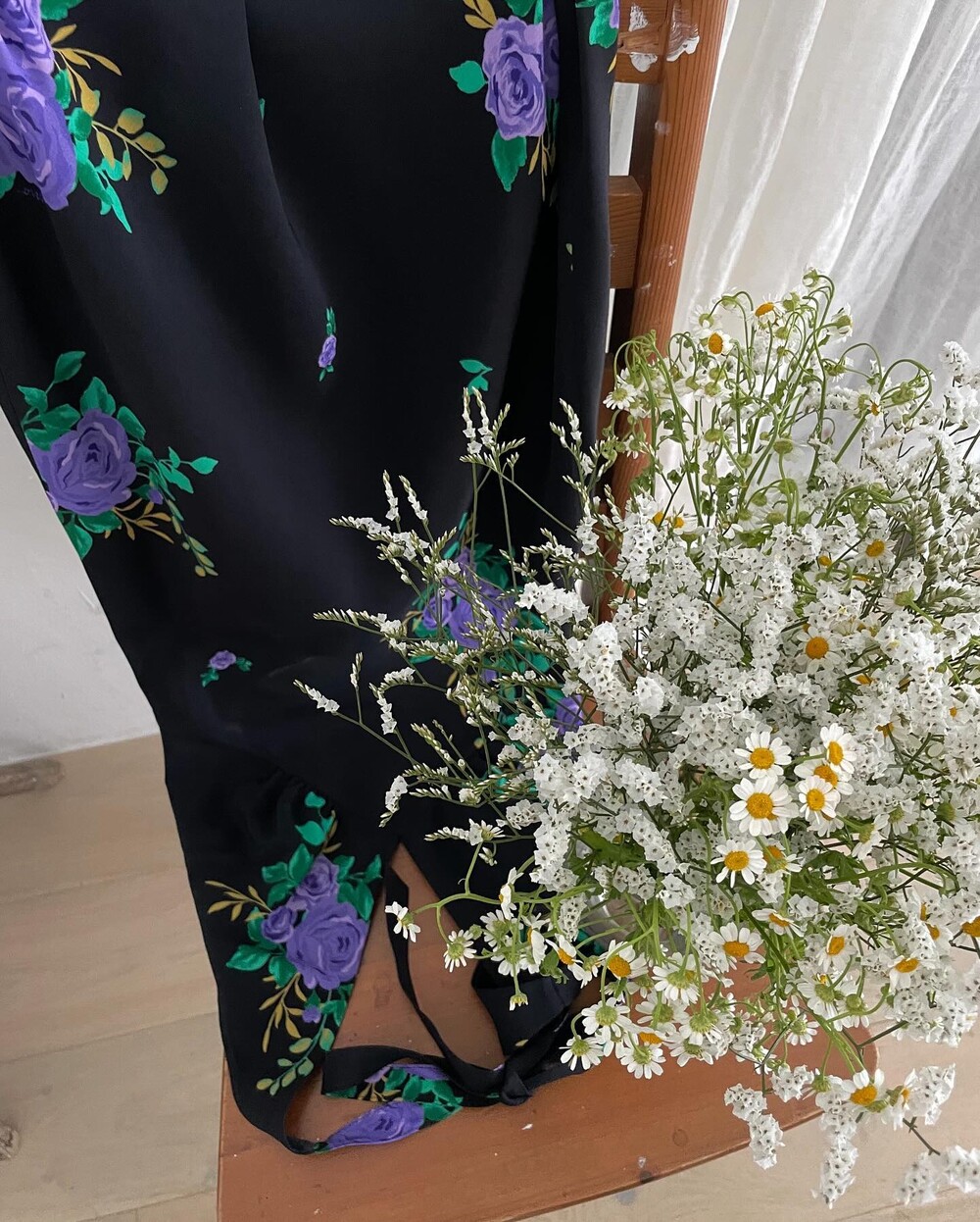 그렇게 탄생한 이 어여쁜 장미. 그 크기에 따라 바디 적재 적소에 놓이면 무드가 훨씬 더 많이 골져스할 것 같아,(특히 이 드레스의 무드에는 필연적으로) 프린트 개체 위치를 고정/통일하여 재단부터 마무리 까지 1:1 핸드메이드로 생산됩니다. 업계 경험자분들은 특히 더 아실거에요. 기성품의 생산 퀄리티가 아니기에 절대 쉽게 진행 할 수 없는 공정이란 것 을요.