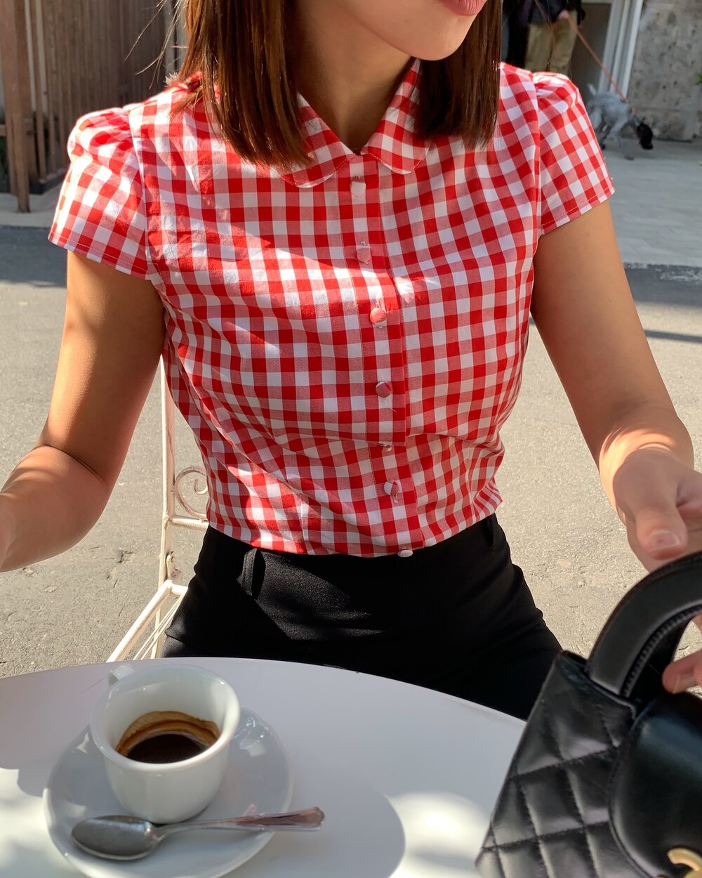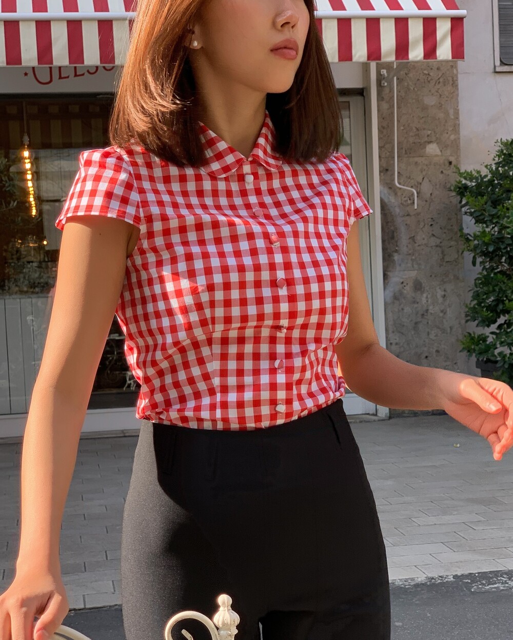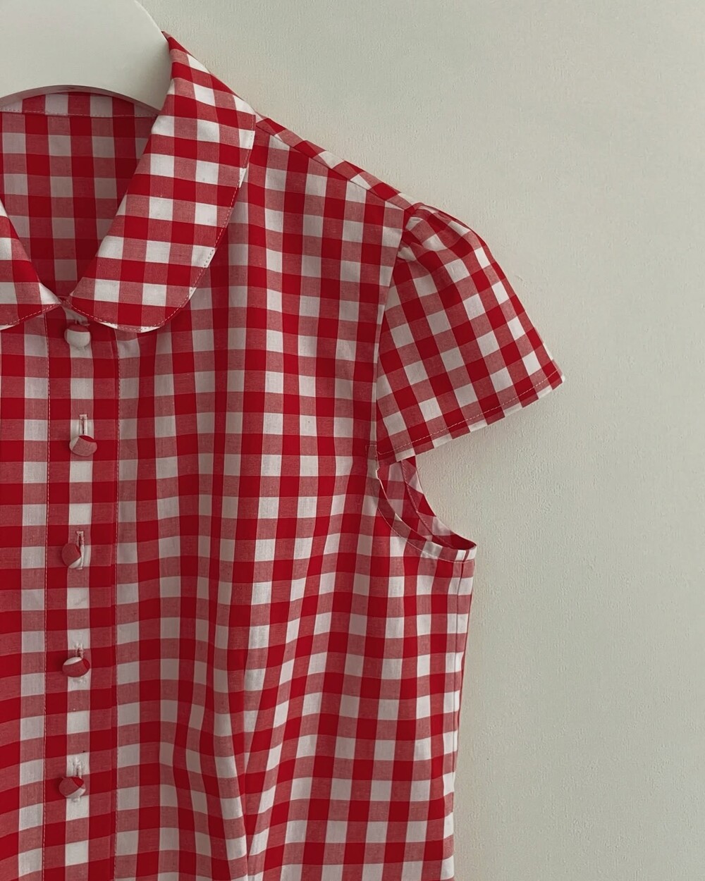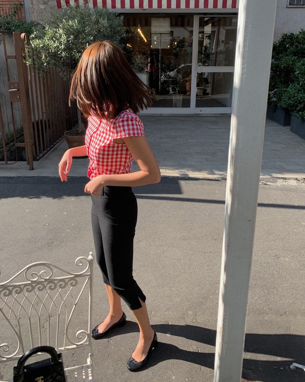 앞중심은 당연하고 옆선, 모든 절개, 다트위로 철저하게 매칭한 체크플레이까지 완성도는 뭐 기절이죠❣️앙증맞은 쁘띠 칼라의 체크까지 양쪽 대칭인거 실화냐며...!