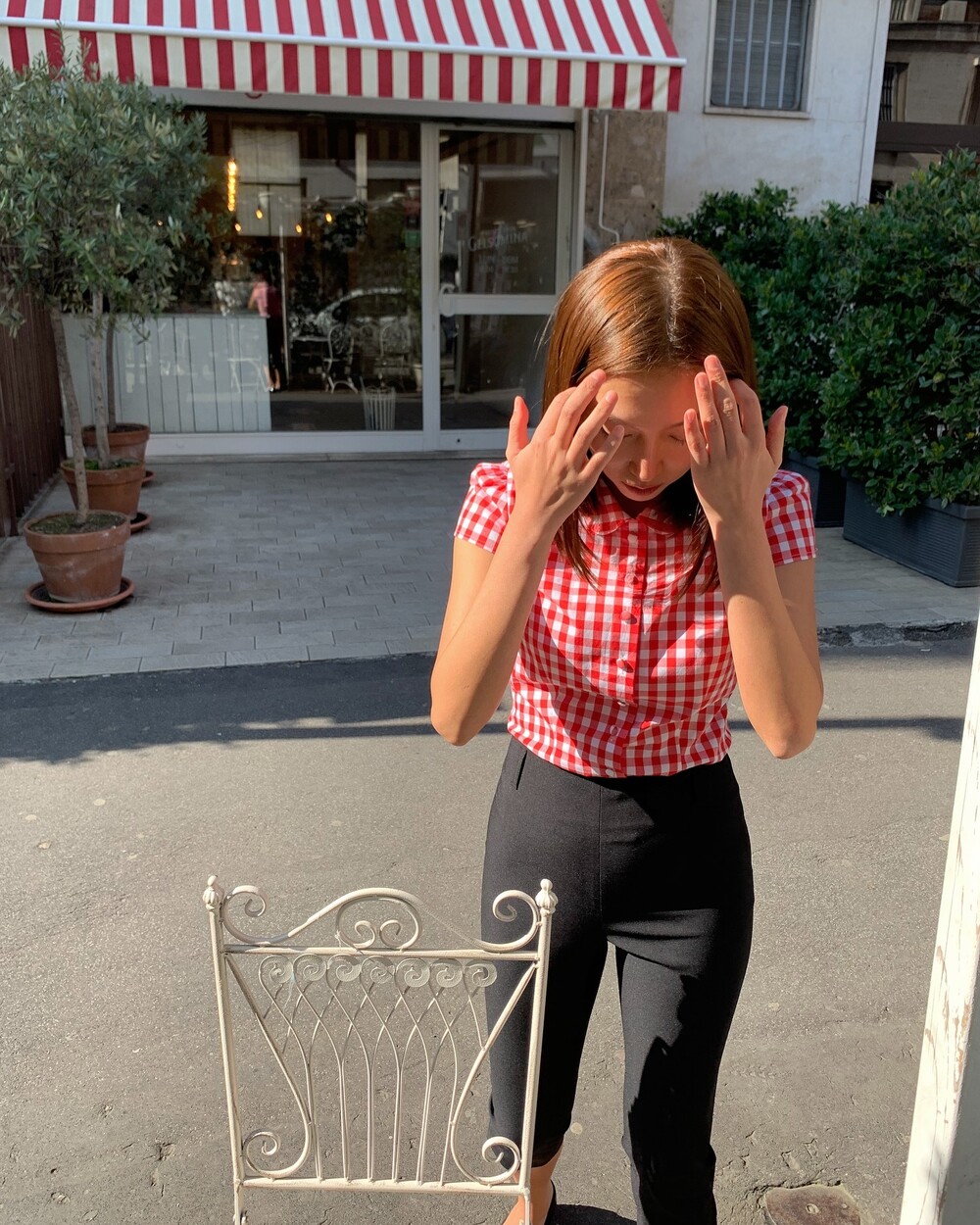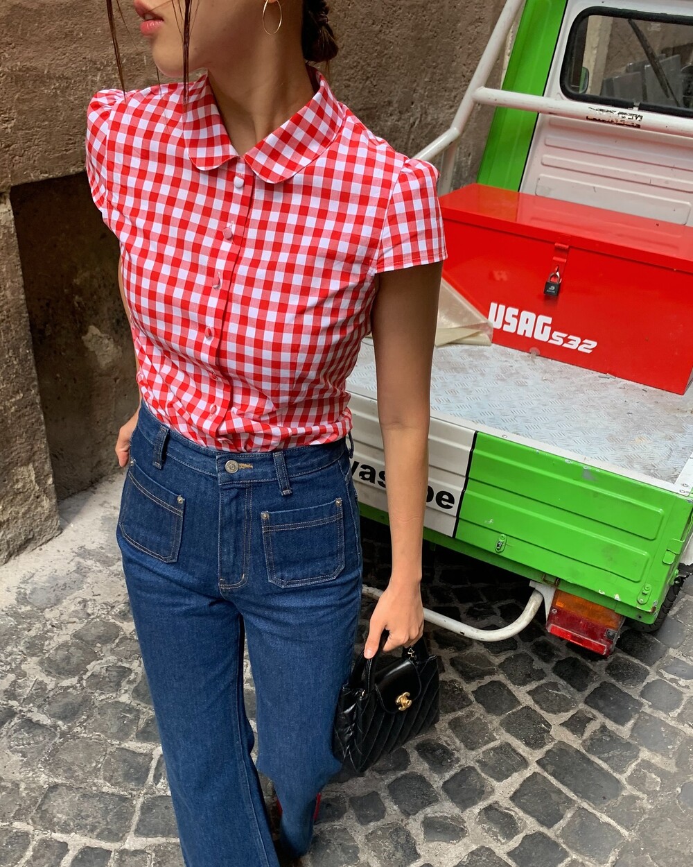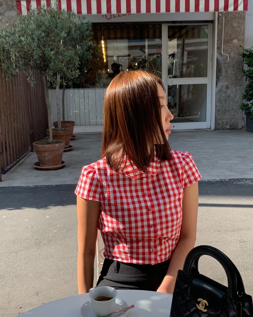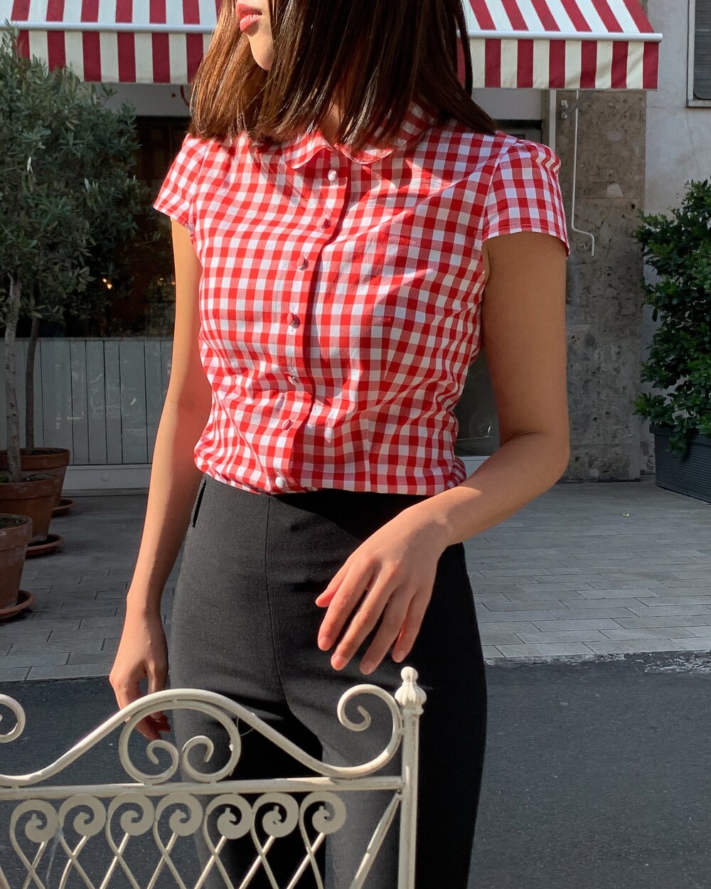 앞중심은 당연하고 옆선, 모든 절개, 다트위로 철저하게 매칭한 체크플레이까지 완성도는 뭐 기절이죠❣️앙증맞은 쁘띠 칼라의 체크까지 양쪽 대칭인거 실화냐며...!