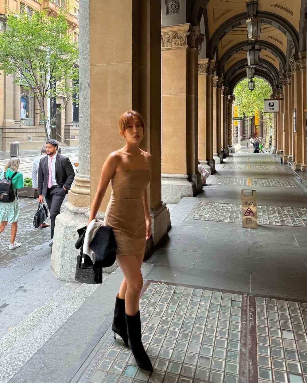 착장 살펴보시면 제 걸음걸이가 꽤 와일드한 컷들이 있는데 핏이 무너지지 않고 자유롭게 착용했답니다.