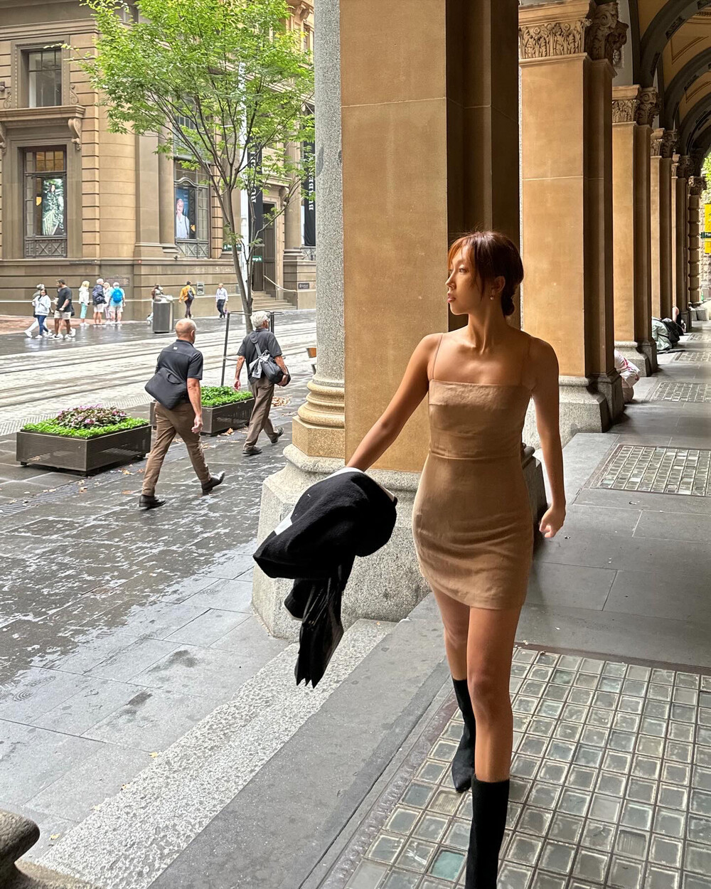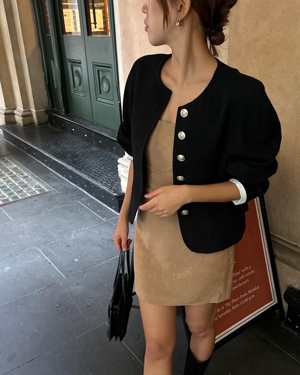 핏은 입어보시면 다들 좋아하시겠지만 무엇보다 힙이 눌리지 않게 아주 미묘한 윗 볼륨을 추가했는데, 웬걸요! 바디라인이 글래머러스해보이는 것은 물론이고, 종종걸음으로 걸을 필요도 없어 너무 좋았습니다.